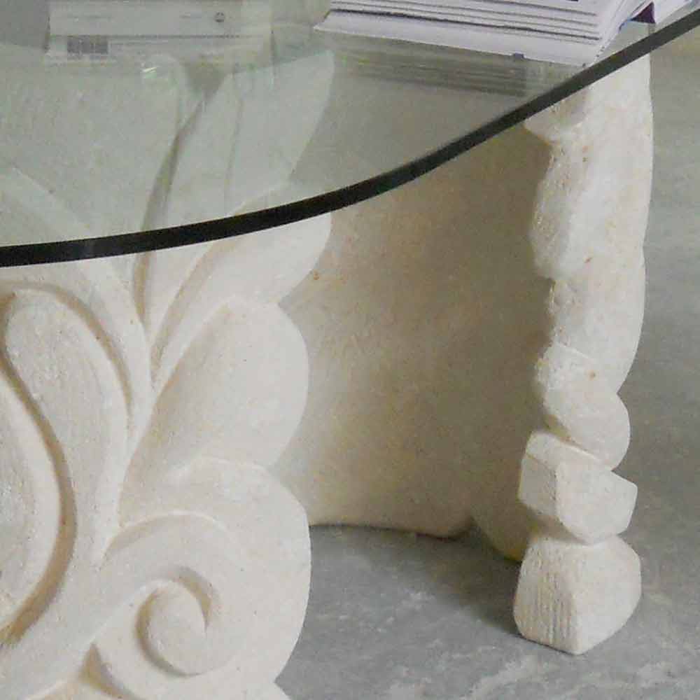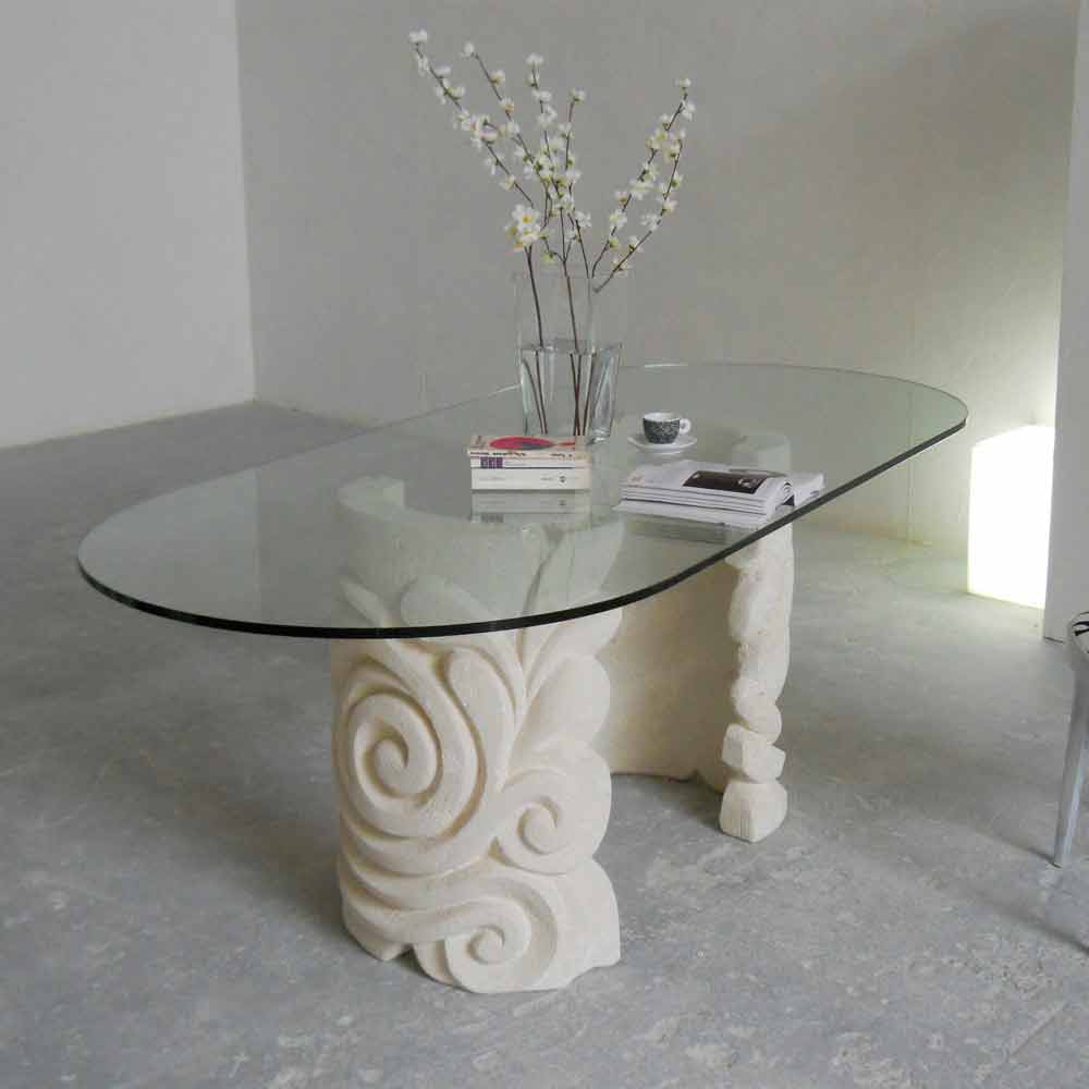 Mesa ovalada piedra de Vicenza y cristal hecha a mano Aden