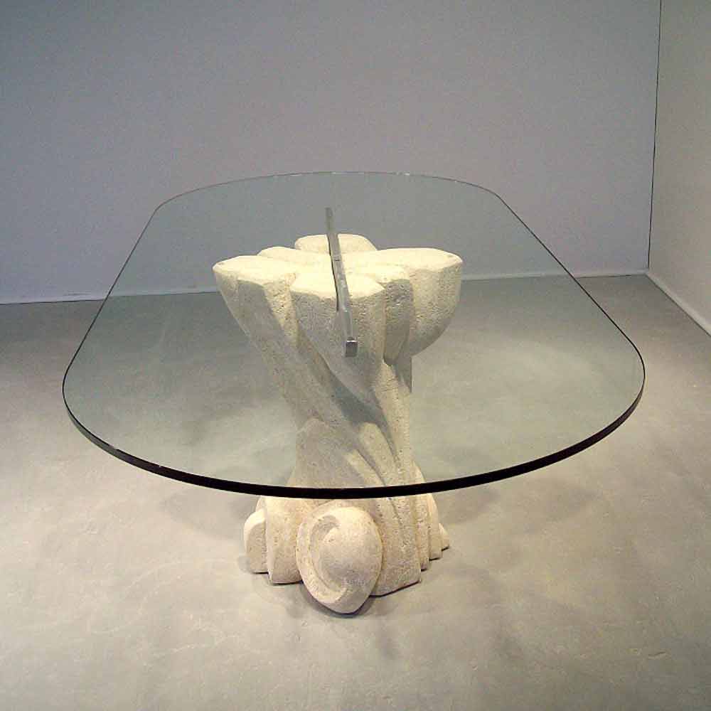 Mesa ovalada piedra Vicenza y cristal hecha a mano Afrodite