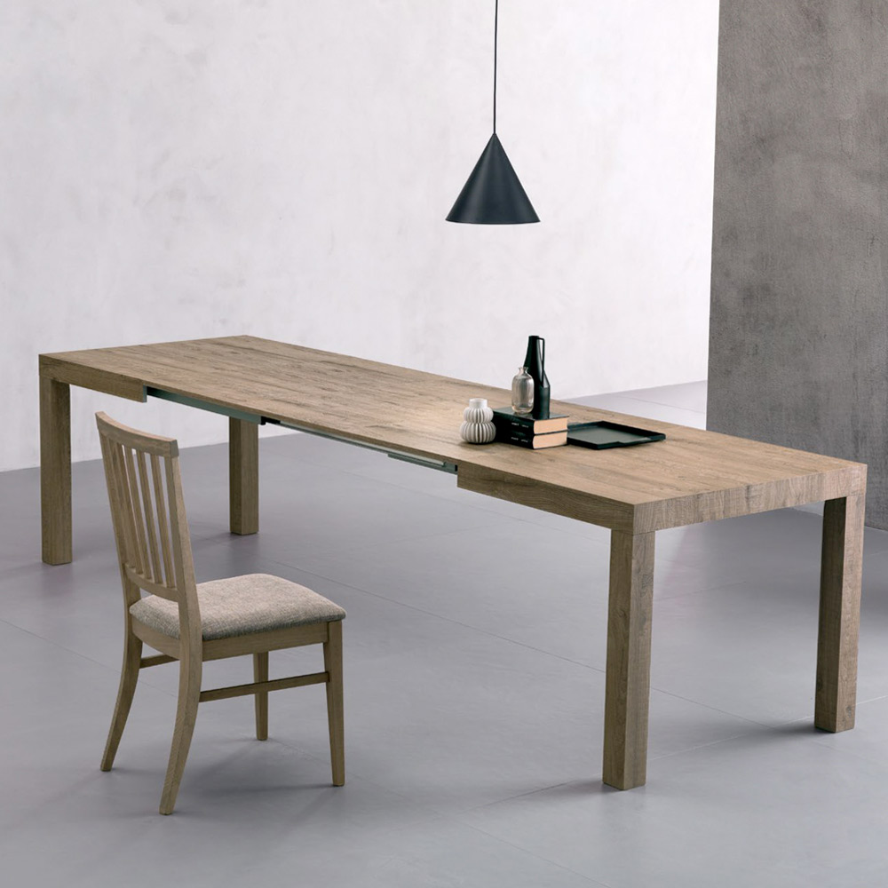Elegante, práctica y versátil, la mesa se adapta perfectamente a diferentes configuraciones interiores, ofreciendo siempre un aire de discreta sofisticación.