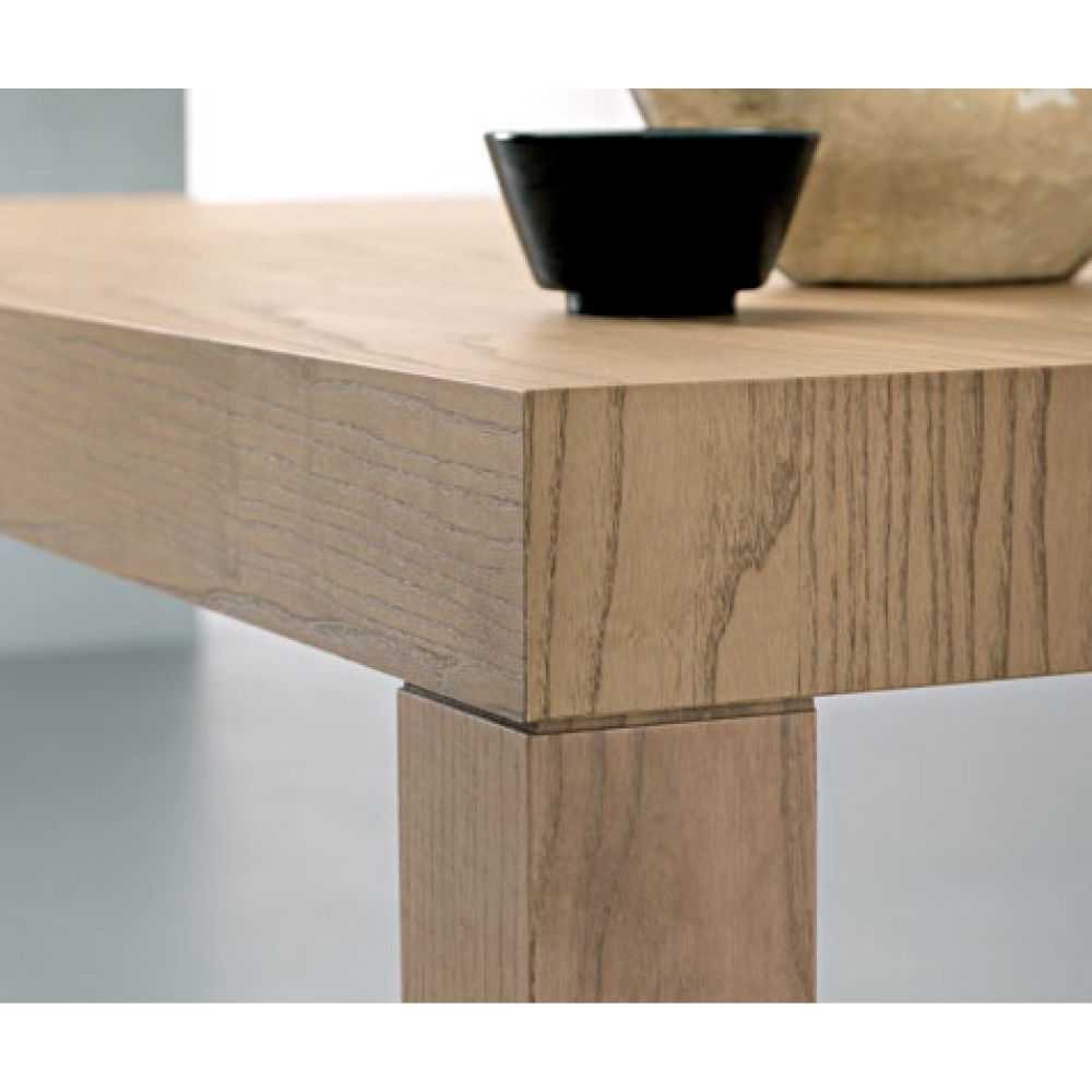 Las patas de la mesa, con su perfil sencillo pero audaz, aportan estabilidad y un aspecto contemporáneo, mientras que la madera clara se integra a la perfección en cualquier ambiente, ya sea moderno o tradicional. La belleza de la madera en bruto, combinada con una construcción de alta calidad, la convierte en la opción ideal para quienes buscan un mueble duradero que aporte un toque de distinción a su espacio.
