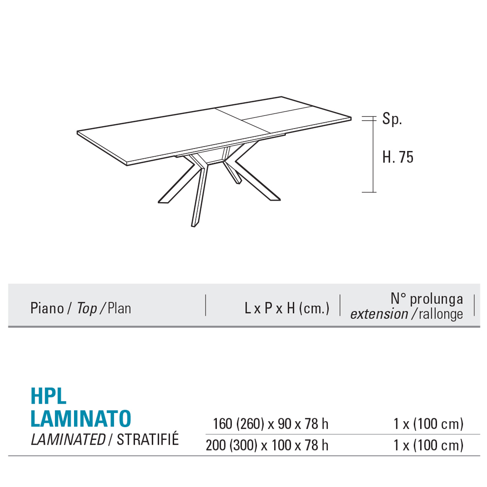 La superficie rectangular de HPL ofrece un aspecto refinado y material, perfecto para ambientes modernos. La superficie es resistente , ideal para el uso diario sin sacrificar la estética. El sistema de extensión integrado permite extender la mesa fácilmente, lo que la hace perfecta para recibir a amigos y familiares en cualquier ocasión.