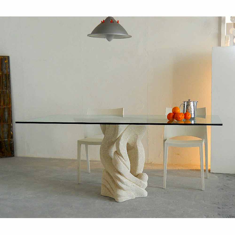 Mesa rectangular piedra Vicenza cristal hecha a mano Ascanio