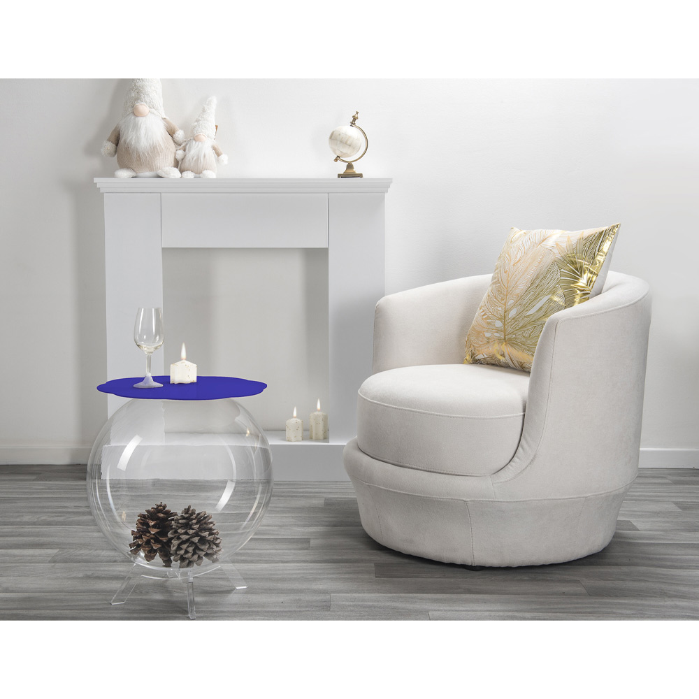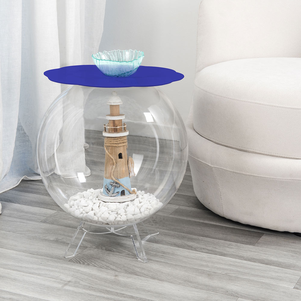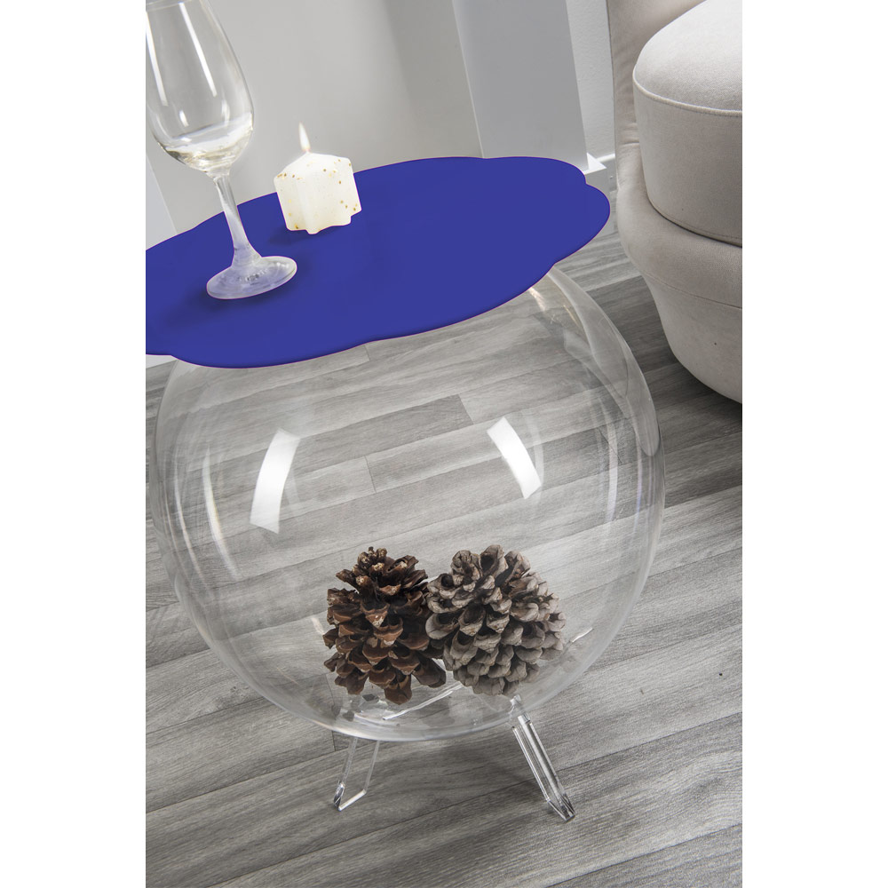 Mesa / contenedor de plexiglás con una estructura esférica que se puede utilizar como un jarrón para arreglos florales, como un acuario, como un contenedor para juguetes o como una canasta de lavandería. La transparencia de la mesa BIFFY la convierte en una pieza con un diseño discreto que se puede colocar fácilmente en el hogar. El estante está hecho de plexiglás de PMMA 100% de polímero de color azul virgen. El plexiglás es a prueba de golpes, indeformable, inalterable y aislante del calor. El brillo y el brillo se mantienen constantes y sin cambios a lo largo del tiempo. El plexiglás de PMMA de polímero virgen utilizado por es no tóxico, hipoalergénico, inodoro y antibacteriano. 100% reciclable Diseñado, diseñado y fabricado en Italia, con materiales italianos.