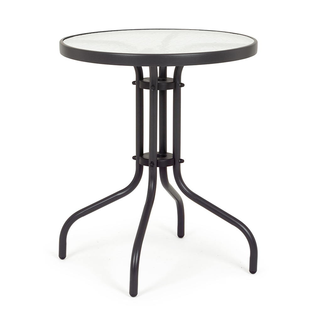 Mesa redonda de acero para exterior con sobre de cristal, elemento de jardín.