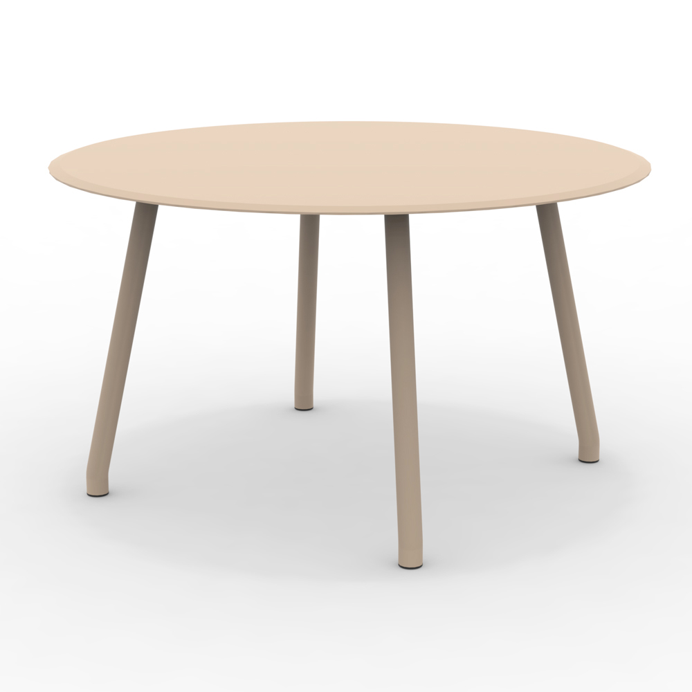Su superficie redonda ofrece una amplia superficie de apoyo, ideal para recibir a amigos y familiares durante agradables momentos al aire libre. Las patas ligeramente inclinadas aportan estabilidad y un toque de elegancia, mientras que su diseño minimalista se adapta fácilmente a cualquier decoración exterior.