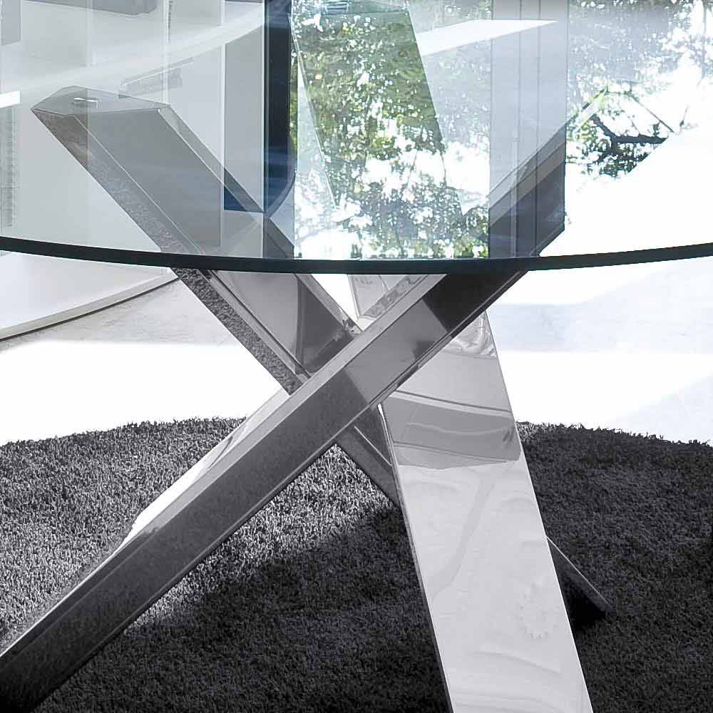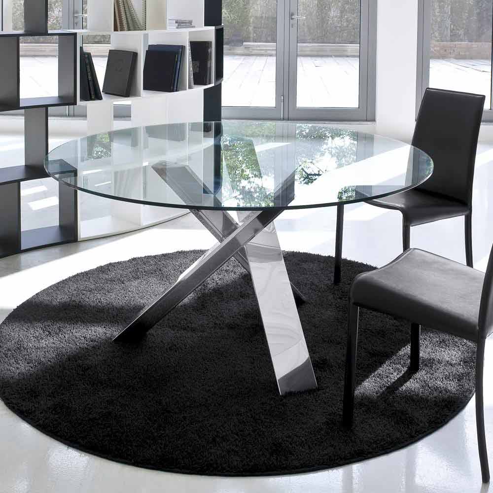 Mesa redonda de diseño D 130 tapa de cristal fabricada en Italia Cristal
