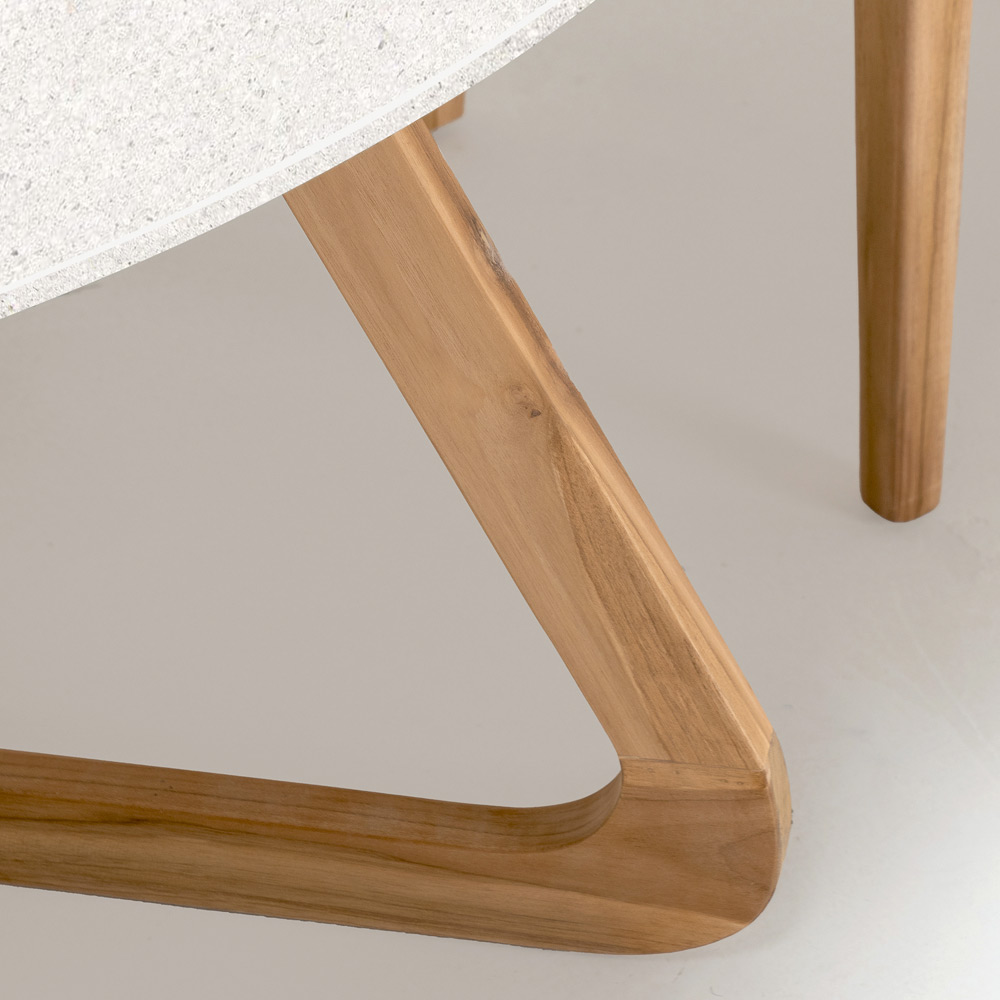 La base de madera se integra armoniosamente con la moderna encimera de cerámica, ofreciendo una combinación de calidez natural y diseño moderno. Esta composición no solo es estéticamente agradable, sino que también garantiza estabilidad y durabilidad gracias a los materiales de alta calidad seleccionados para resistir las inclemencias del tiempo.