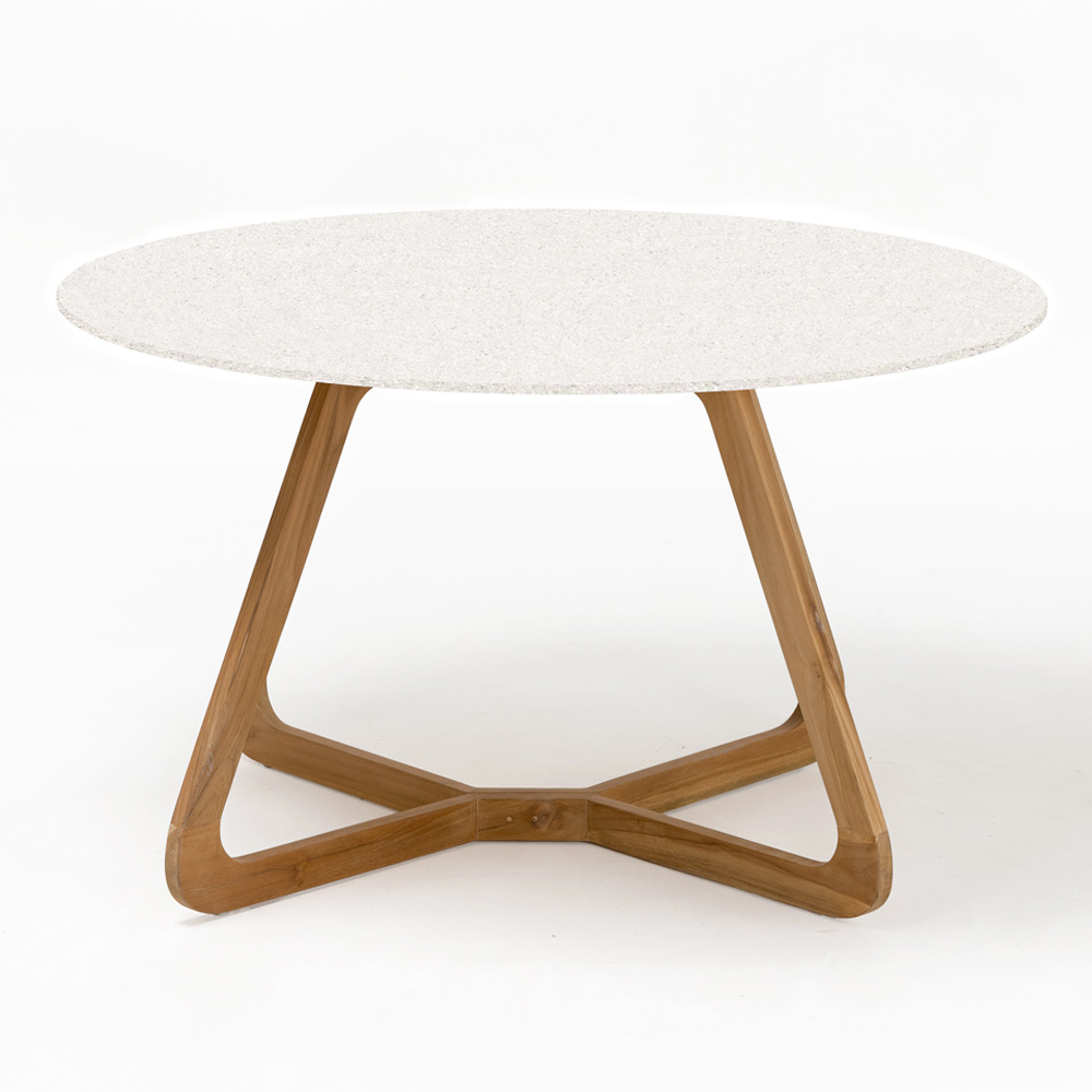 Mesa de jardín redonda de madera y cerámica, fabricada en Italia.
