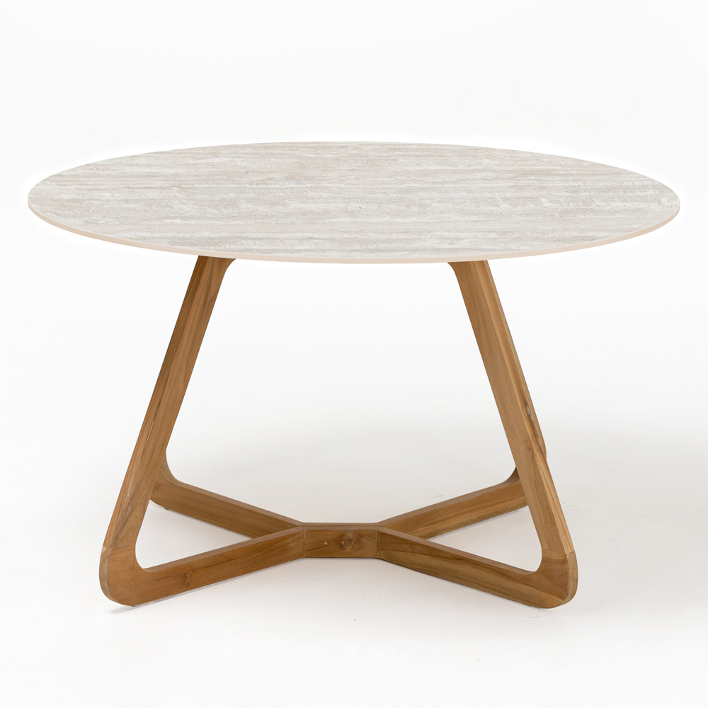 Mesa de jardín redonda de madera y cerámica, fabricada en Italia.
