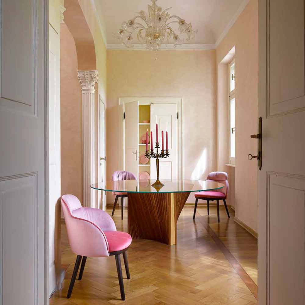 diseño . Gracias a su fuerte personalidad y la maravillosa combinación de la elegancia del vidrio y la majestuosidad de la madera, este producto es capaz de amueblar comedores y cocinas con un gusto contemporáneo en busca de un objeto único, una verdadera
