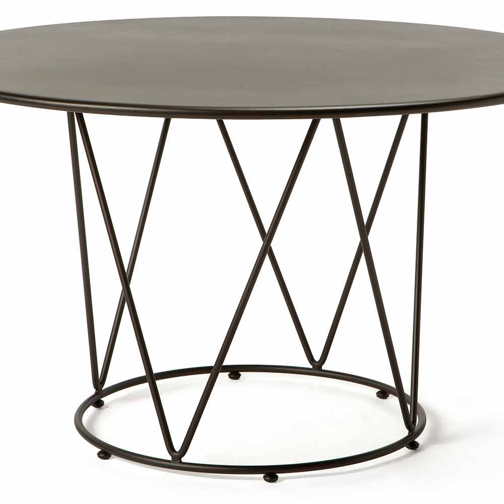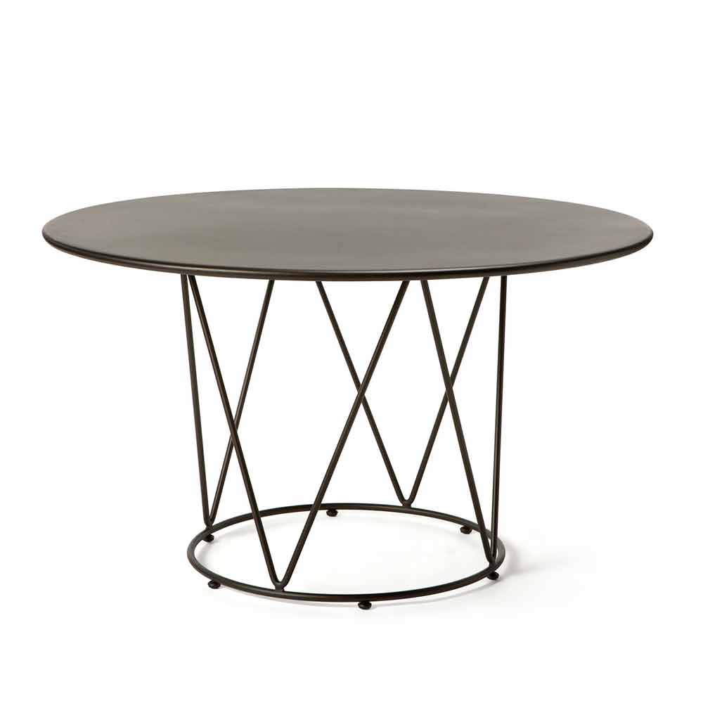 Mesa redonda de exterior con estructura de hierro galvanizado con recubrimiento en polvo, pintada con polvos termoendurecibles, ideal para dotar al producto de solidez y resistencia a la intemperie, manteniendo siempre colores y acabados vibrantes. Caracterizada por un diseño innovador y refinado, es el elemento perfecto para dotar a cualquier ambiente de carácter y modernidad, sin descuidar la funcionalidad y la practicidad. Ideal para amueblar espacios privados como jardines, pero también bares y restaurantes.