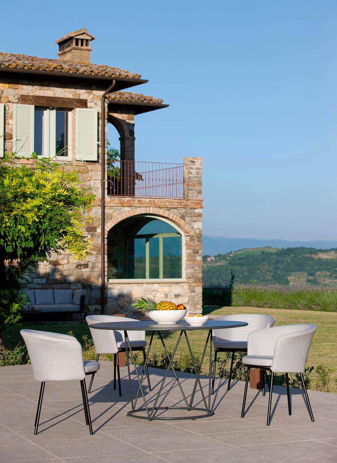 Esta línea de productos Made in Italy se caracteriza por un estilo contemporáneo, donde el elemento central es el uso de líneas y formas geométricas esenciales que crean ambientes dinámicos y funcionales, y que permiten que cada pieza se integre fácilmente en cualquier ambiente exterior. Cada producto de esta línea resulta ideal para completar la decoración de exteriores, garantizando una fusión perfecta entre funcionalidad y estética gracias a los materiales de alta calidad y las técnicas innovadoras que le confieren un magnífico acabado mate.