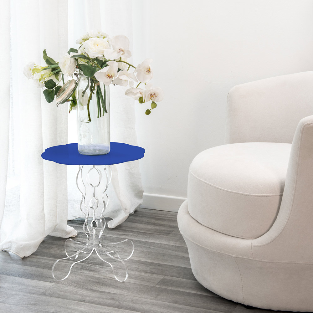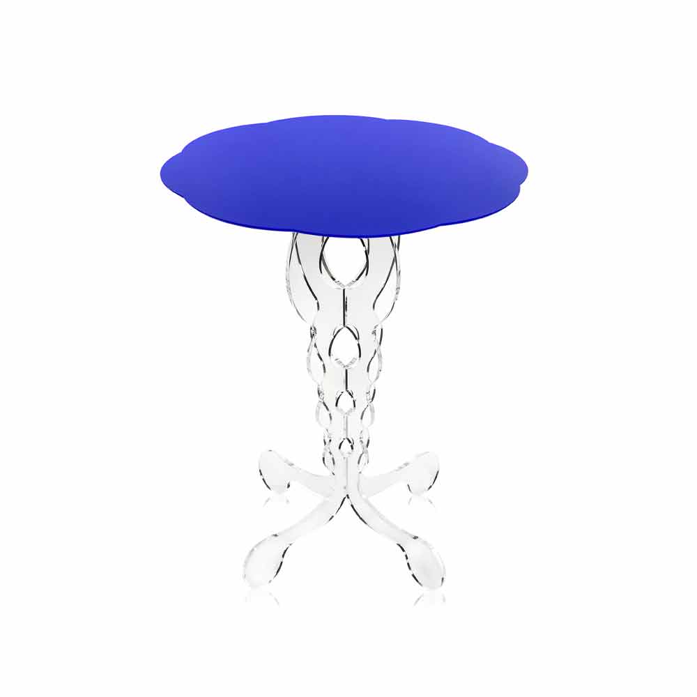 Mesa redonda pequeña azul diámetro 50 cm diseño moderno Janis, made in Italy