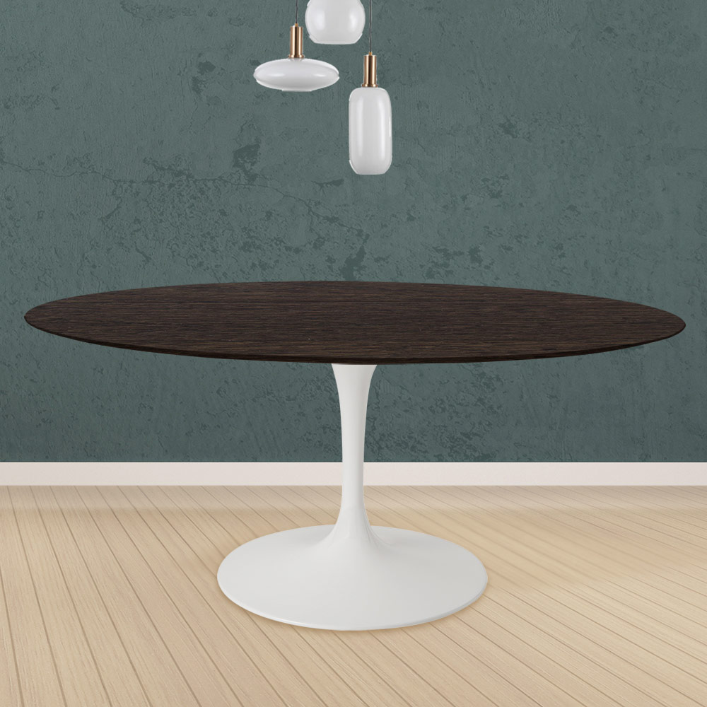 acabados lineales y elegantes. La unión entre la tapa de roble teñido moka y la base de aluminio pulido garantiza