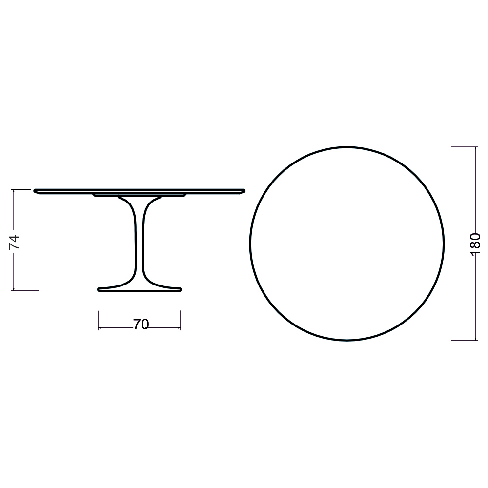 - Diámetro tablero 180 x altura 74 cm / Diámetro base 70 cm