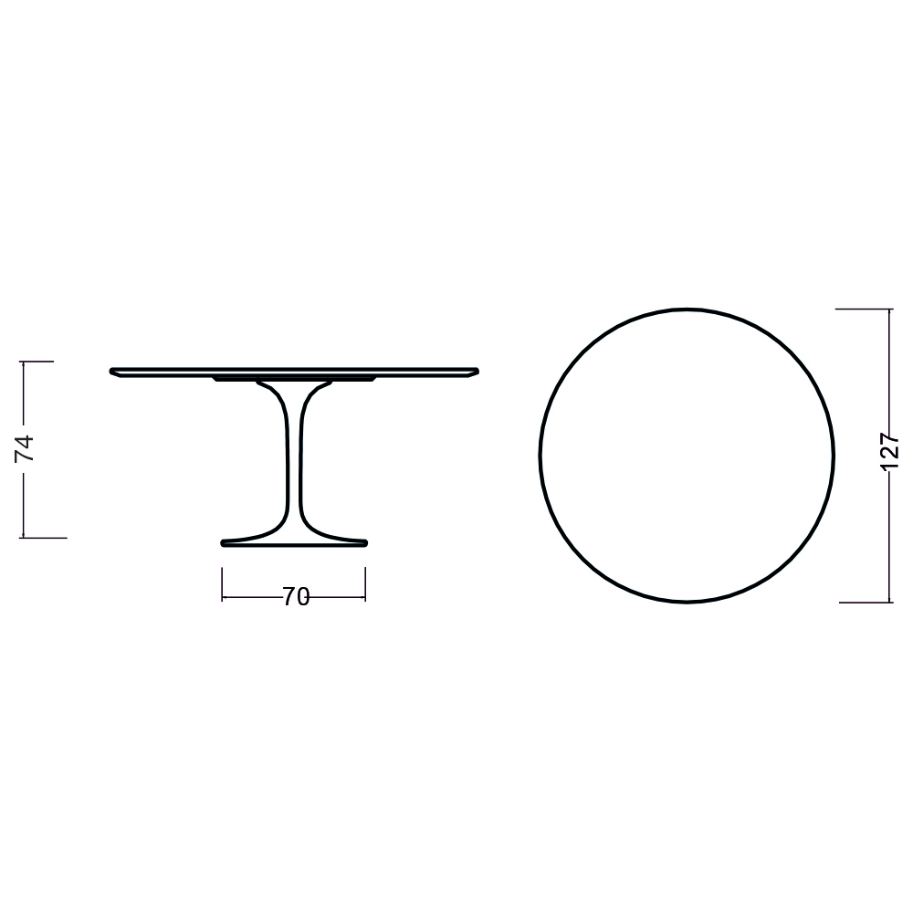 - Diámetro del tablero 127 x altura 74 cm. / Diámetro base 70 cm