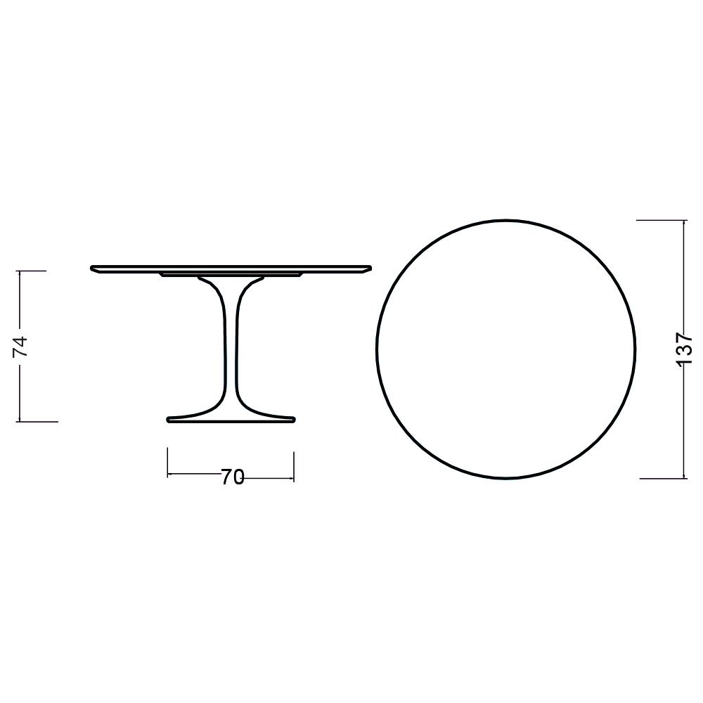 - Diámetro tablero 137 x altura 74 cm / Diámetro base 70 cm