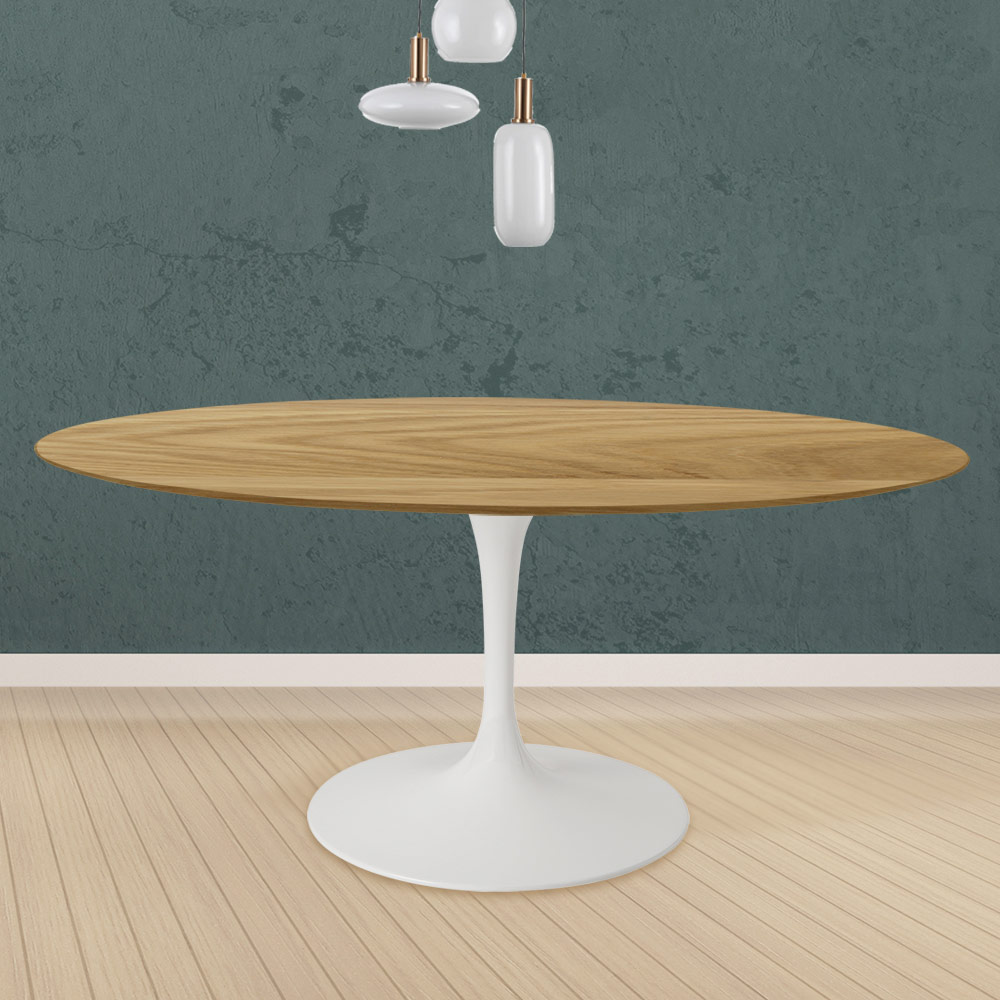 Mesa de comedor redonda en roble natural y base de aluminio pulido Made in Italy