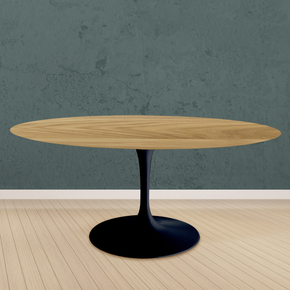 acabados lineales y elegantes. La unión entre el roble natural de la tapa y el aluminio pulido de la base garantiza