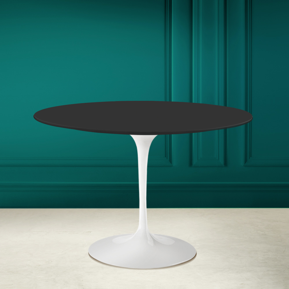 Mesa de comedor con tapa redonda de cerámica blanda Nero y base de aluminio pulido Made in Italy