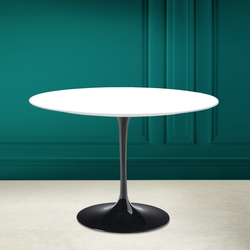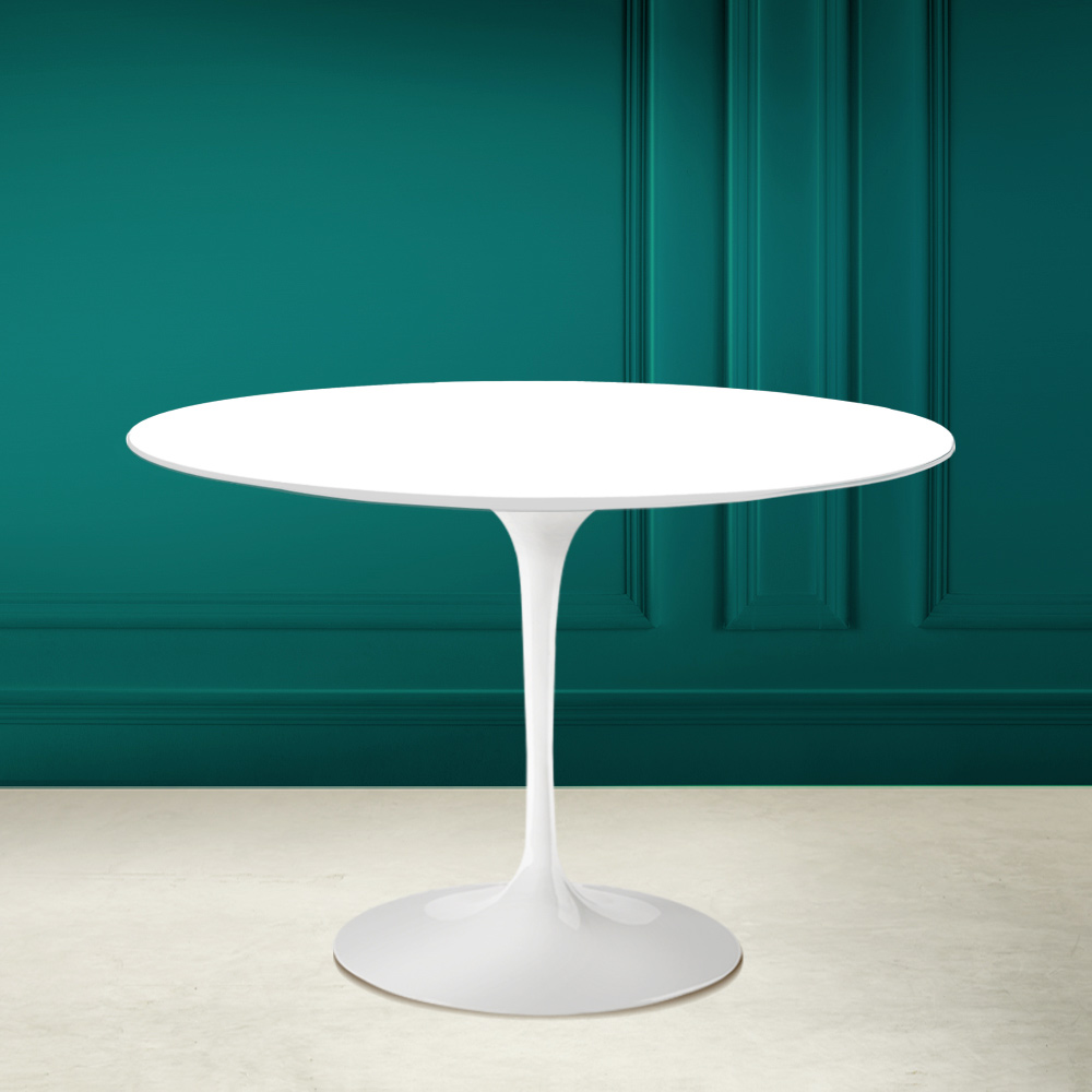 Mesa de comedor con tapa redonda en cerámica blanca absoluta Made in Italy