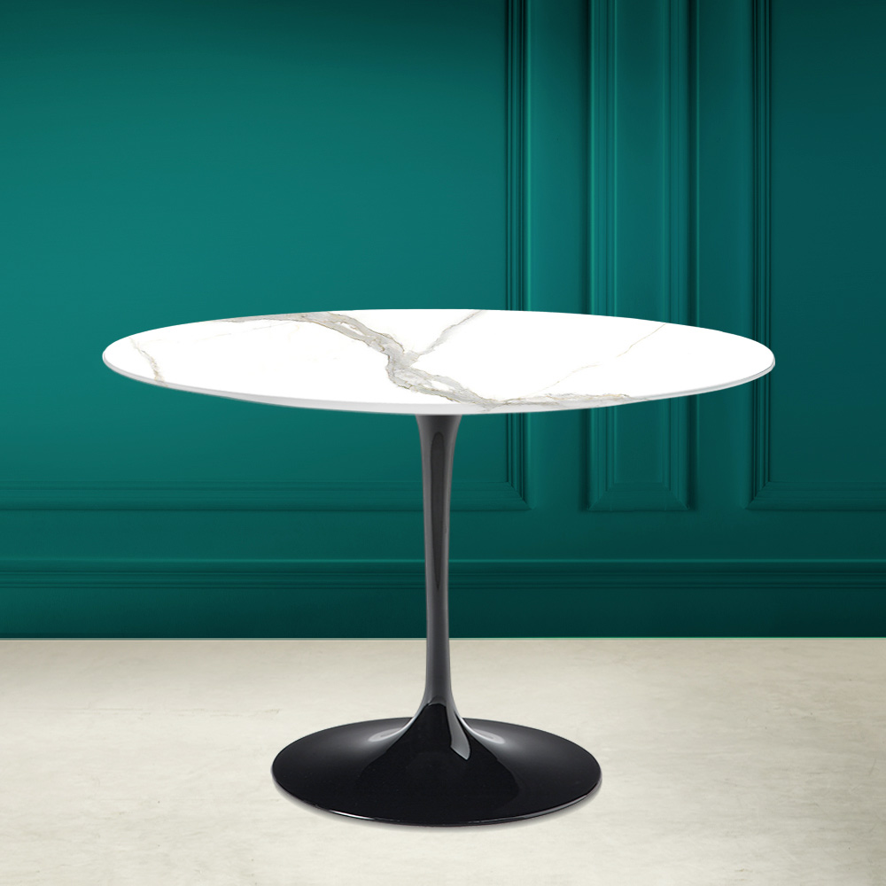 Mesa de comedor con tapa redonda en cerámica calacatta michelangelo Made in Italy