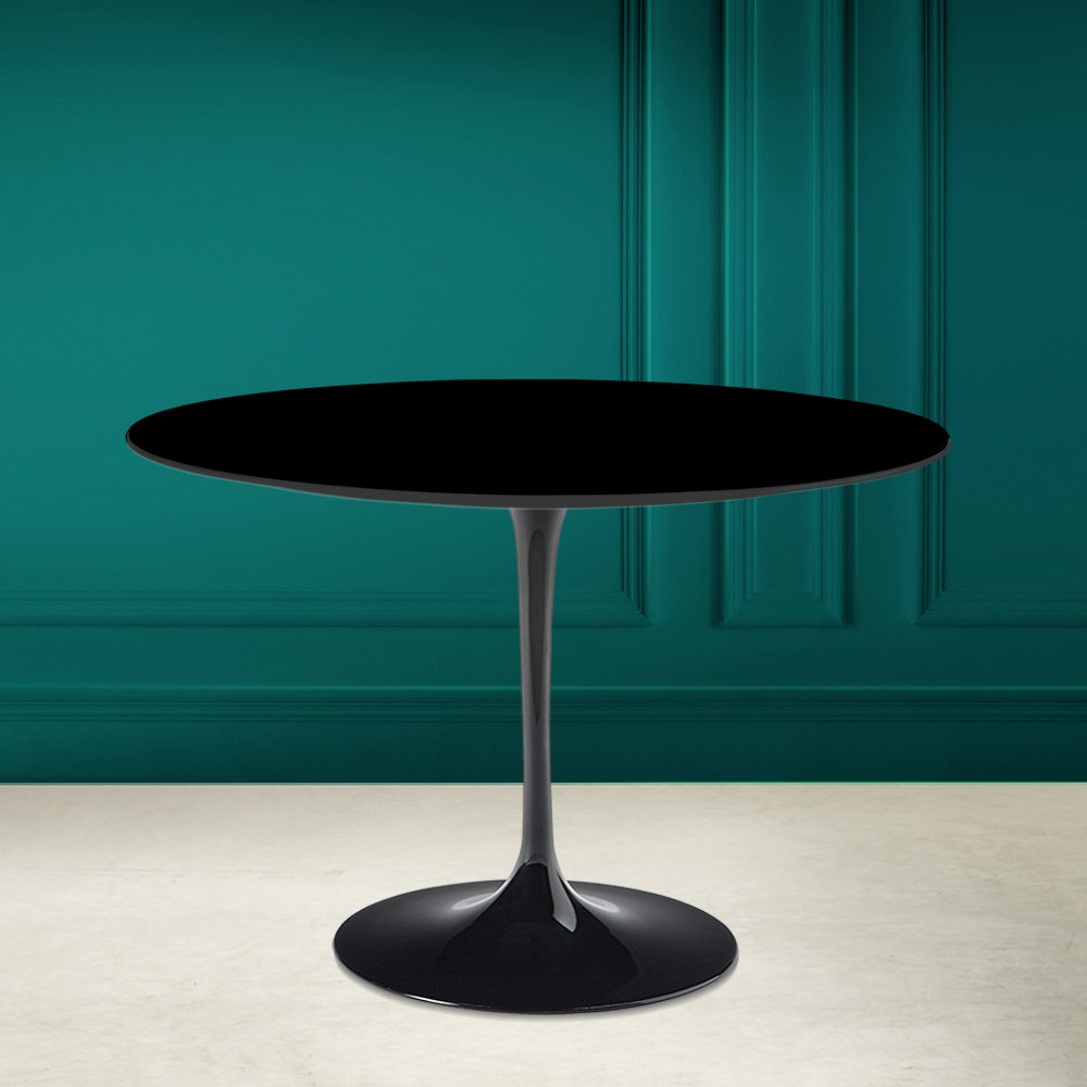 Mesa de comedor con tapa redonda en cerámica negra absoluta Made in Italy