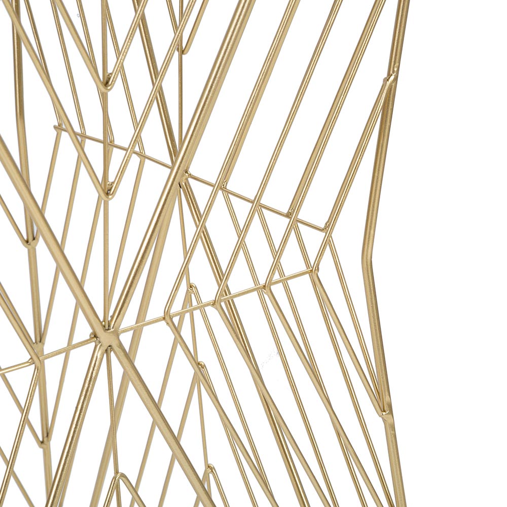 Esta mesa de centro combina la calidez del diseño moderno con la funcionalidad deseada en cada hogar. Su base es una maraña geométrica de líneas de hierro dorado , que se cruzan creando un efecto casi hipnótico, una escultura que sostiene una sobria superficie de apoyo. La silueta abierta no sobrecarga el espacio, sino que añade un elemento de ligera elegancia .