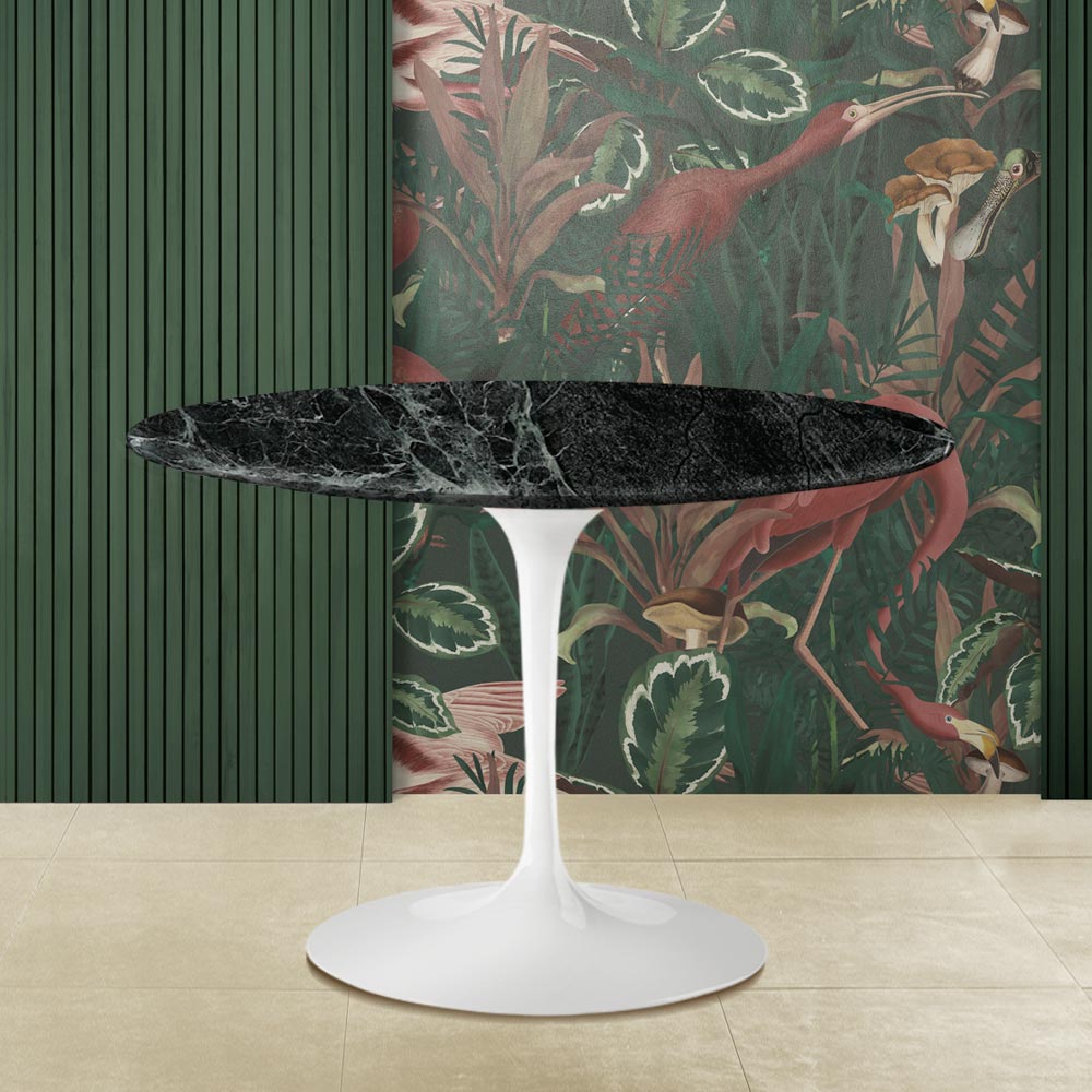 Mesa de comedor redonda con tapa de mármol verde alpes y base de aluminio pulido Made in Italy