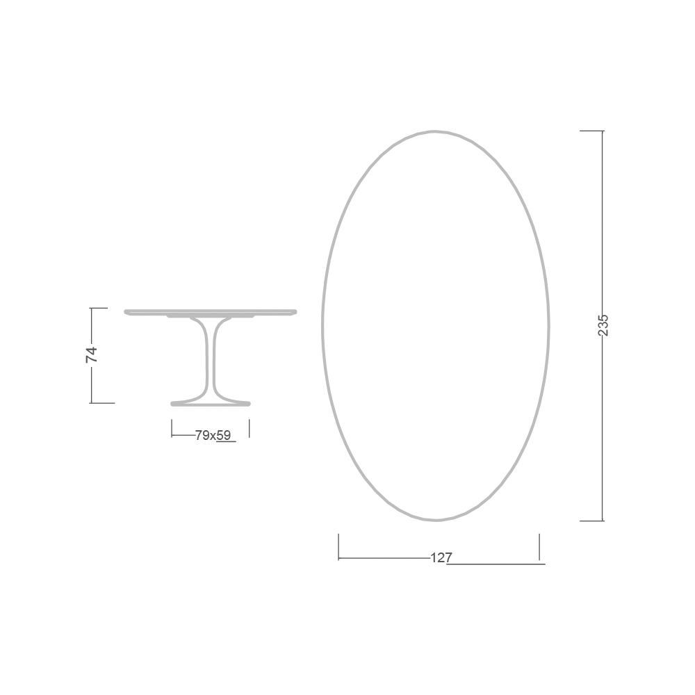 - Top: 140 x 80 - Base: Diámetro 50 - Altura 74 cm;