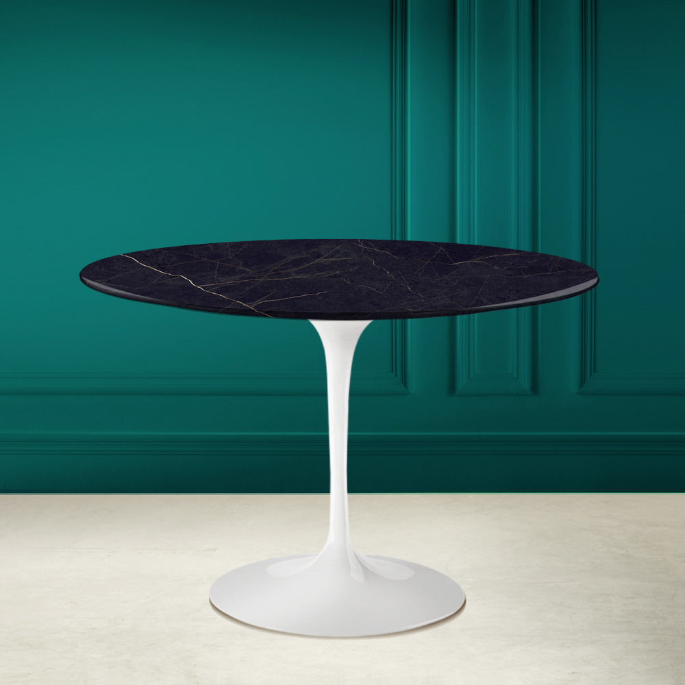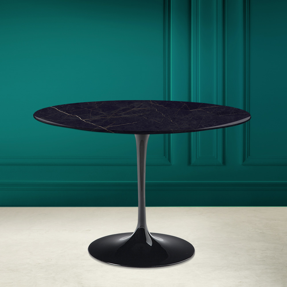 Mesa de comedor con tapa redonda de cerámica noir laurent y base de aluminio pulido Made in Italy