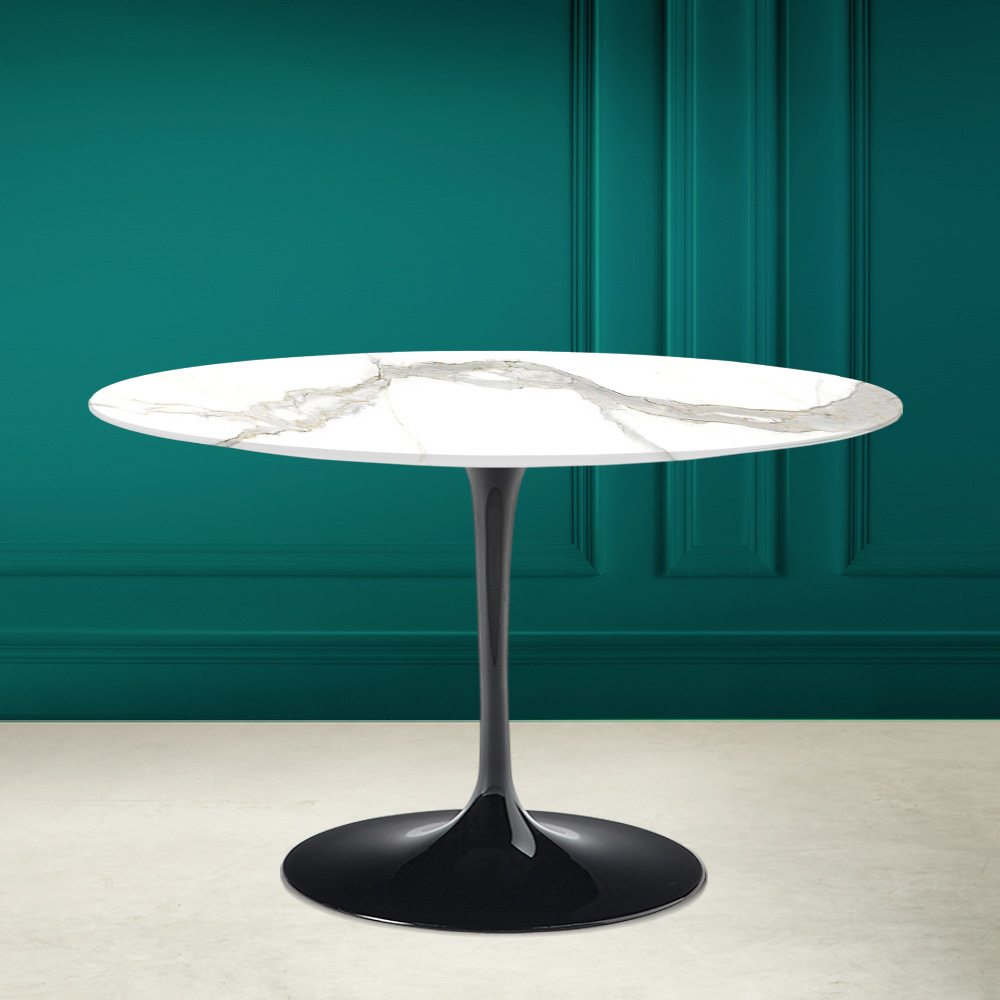 acabados lineales y refinados crean un elemento fácil de encajar en cualquier estilo de mobiliario de cualquier salón y cocina. La unión entre la cerámica calacatta michelangelo y el aluminio pulido hace que esta mesa