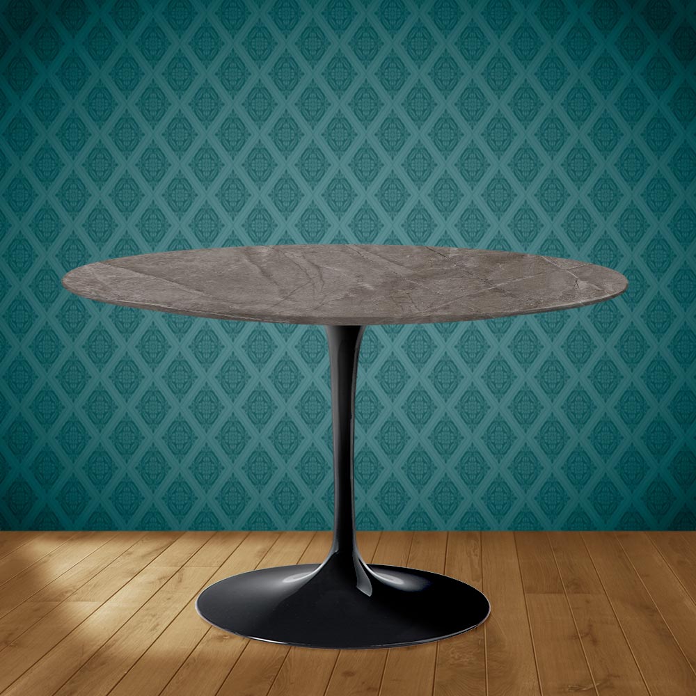 Mesa de comedor de cerámica Kira y aluminio pulido Made in Italy