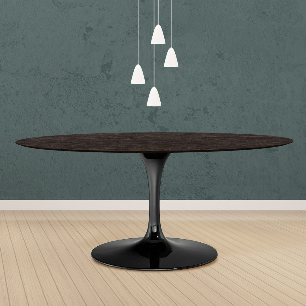 Mesa de comedor ovalada en roble teñido moka y base de aluminio pulido Made in Italy