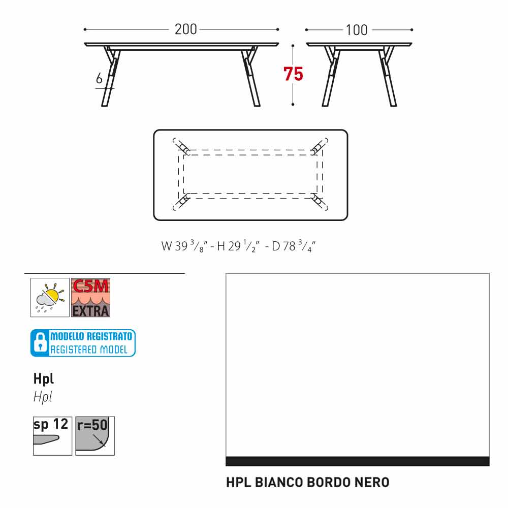 Características: HPL laminados de alta presión. Se componen de varias capas de papel (70%) impregnado con resinas termoendurecibles (30%), y se compacta a través de la acción combinada del calor (alrededor de 150 grados) y alta presión (superior a 7 MPa) durante aproximadamente 45-50 minutos. El resultado es una densidad estable, no reactivo, no poroso y de alta, con características físicas y químicas de alta resistencia mecánica (controlado excursión térmica 80; -40 grados, en tiempo limitado de menos de 30 segundos a temperaturas extremas), la exposición a la luz y la exposición a los cambios de temperatura, incluso en ambientes marinos.