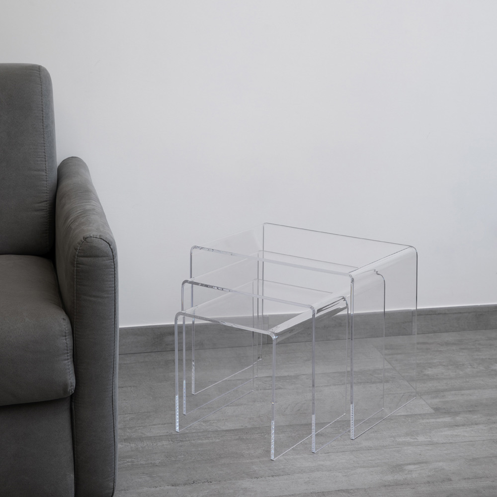Mesas de centro trípticas en cristal acrílico transparente, made in Italy.