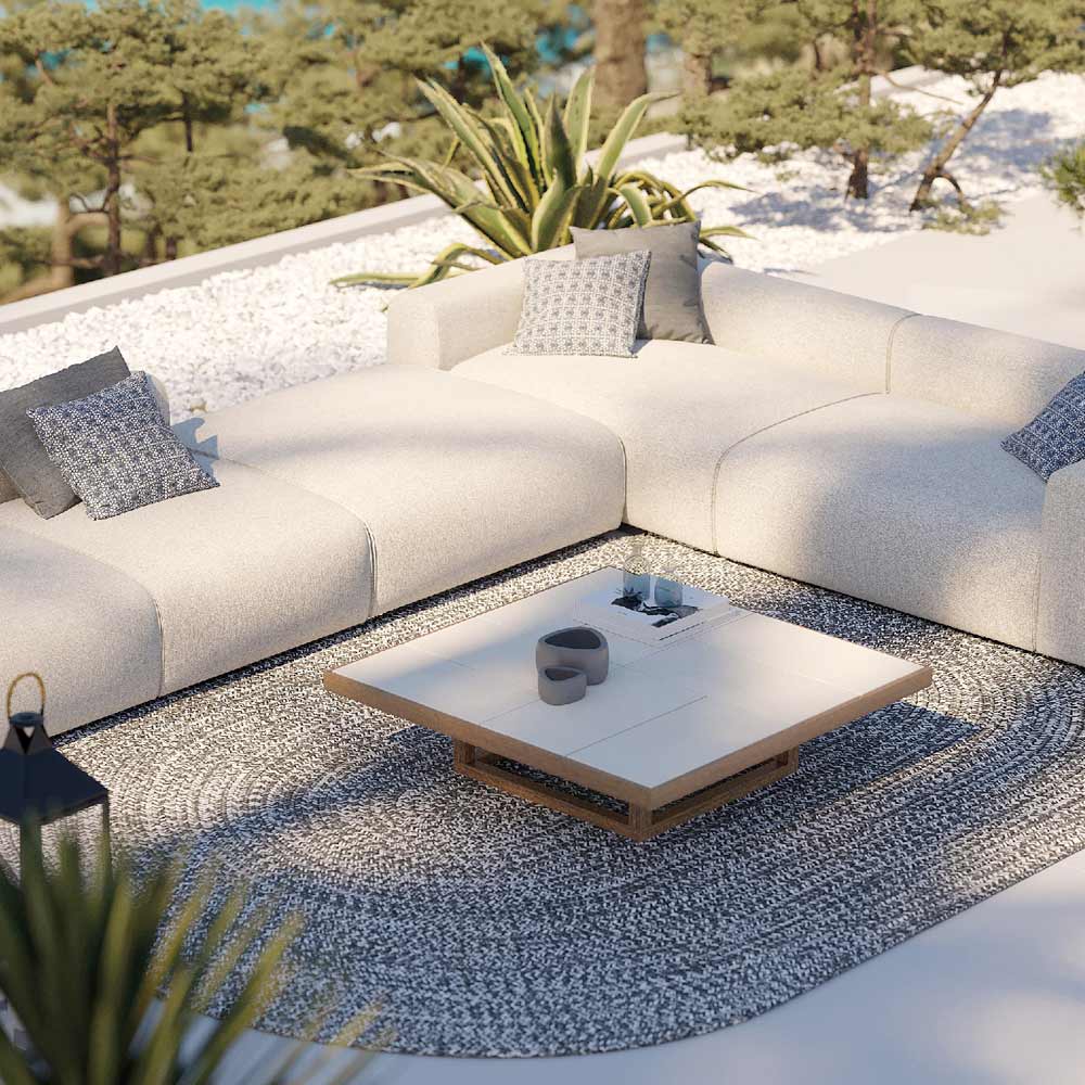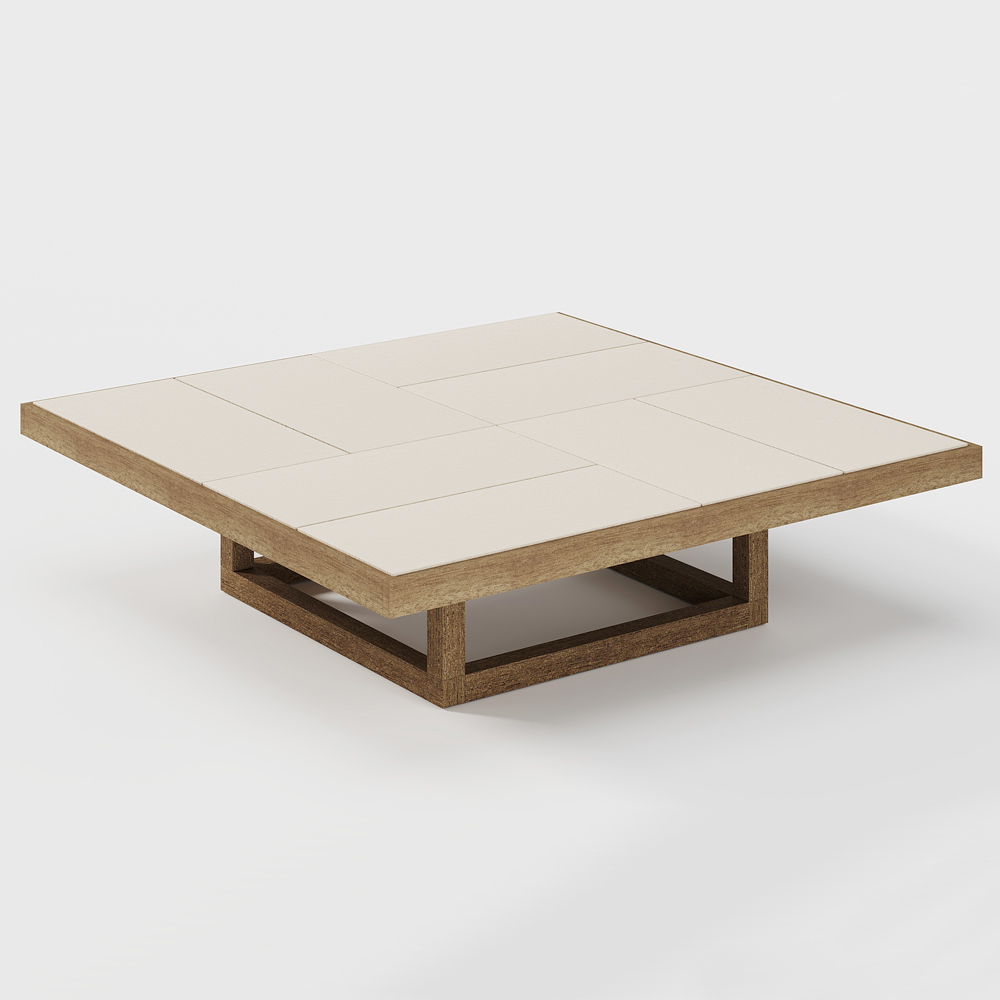 Mesita Baja de Jardín en Madera de Iroko y Sobre en Losas de Gres Made in Italy