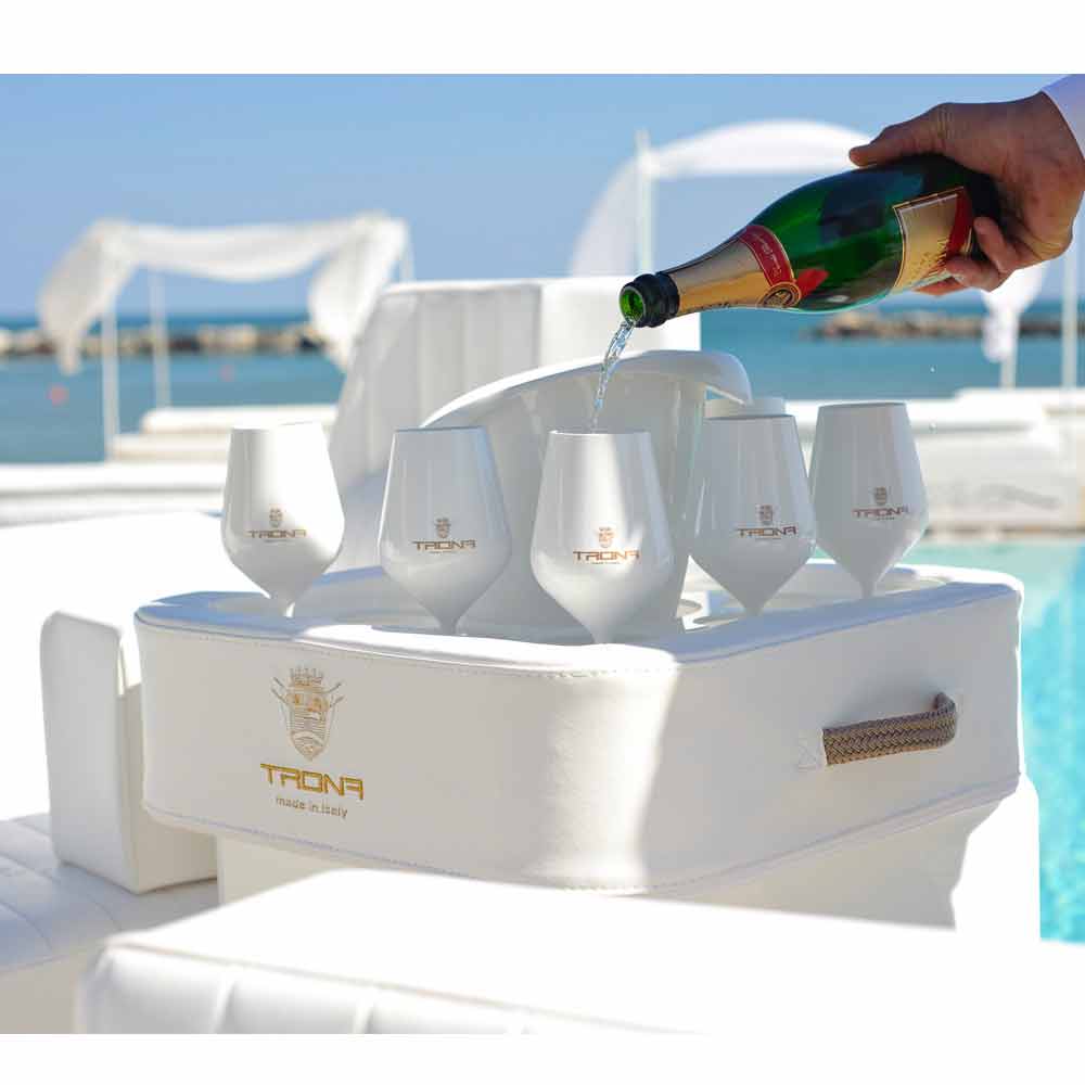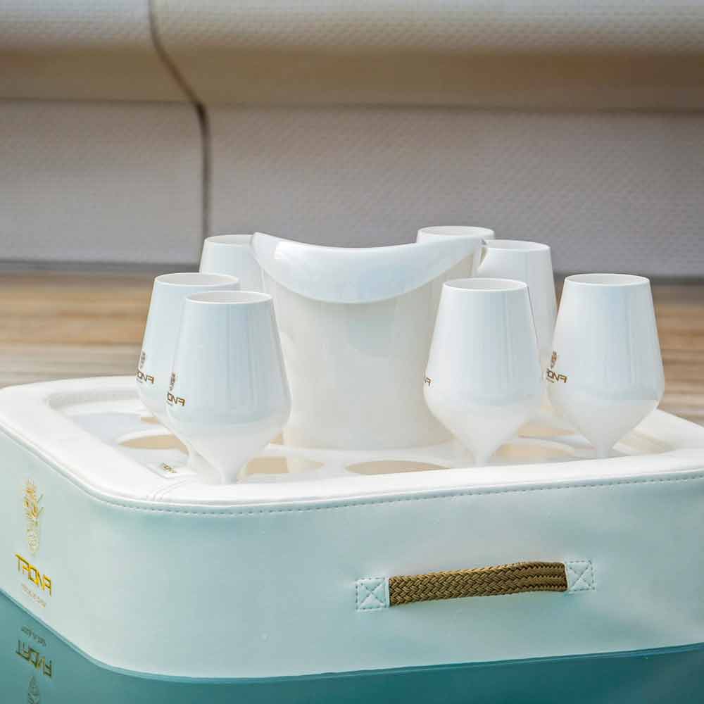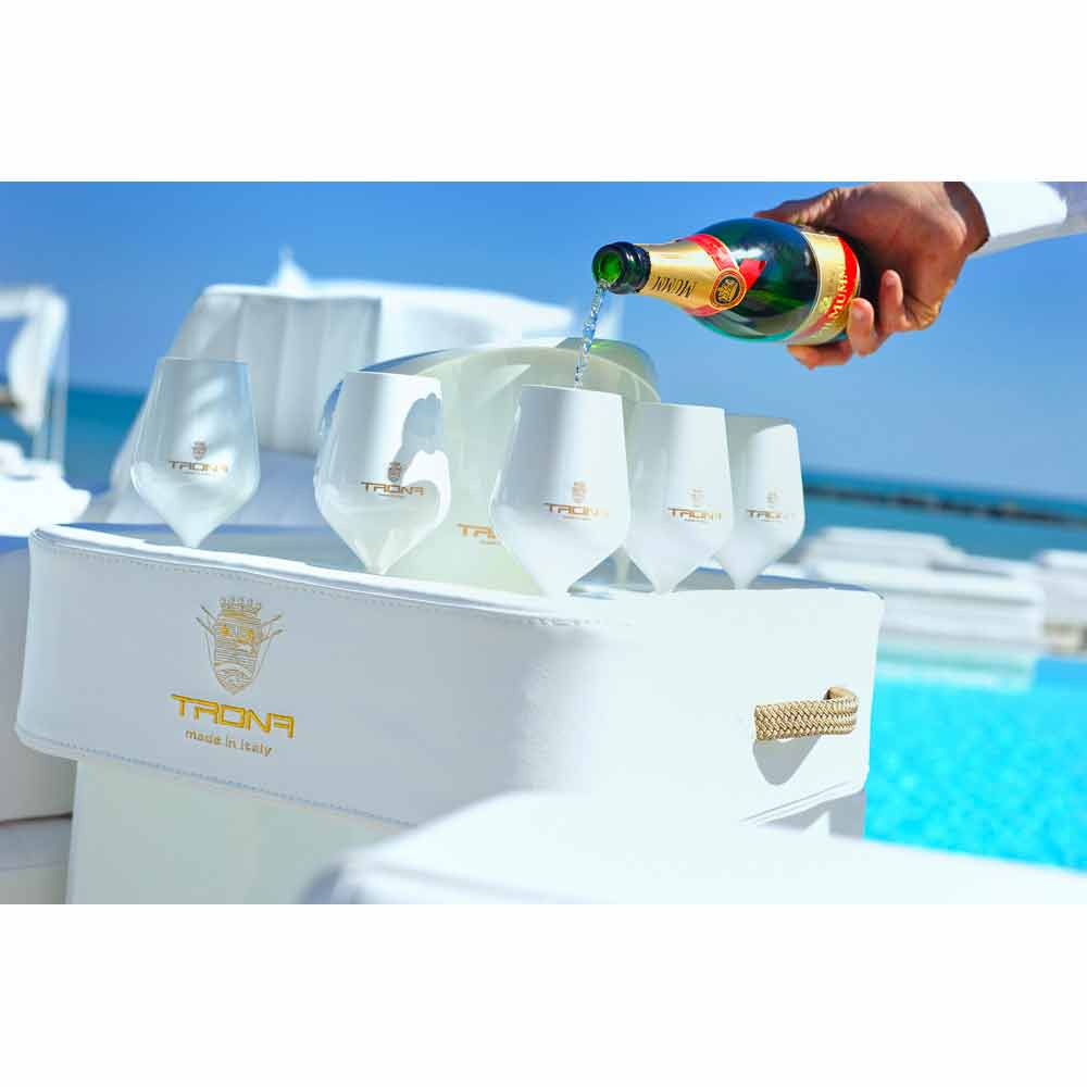 Trona presenta una cesta porta-hielo y un set de 8 vasos de policarbonato.