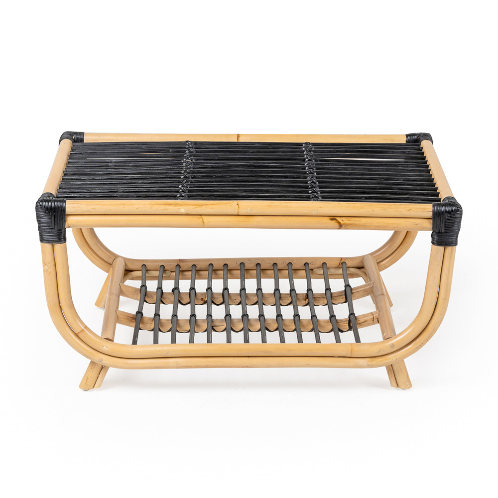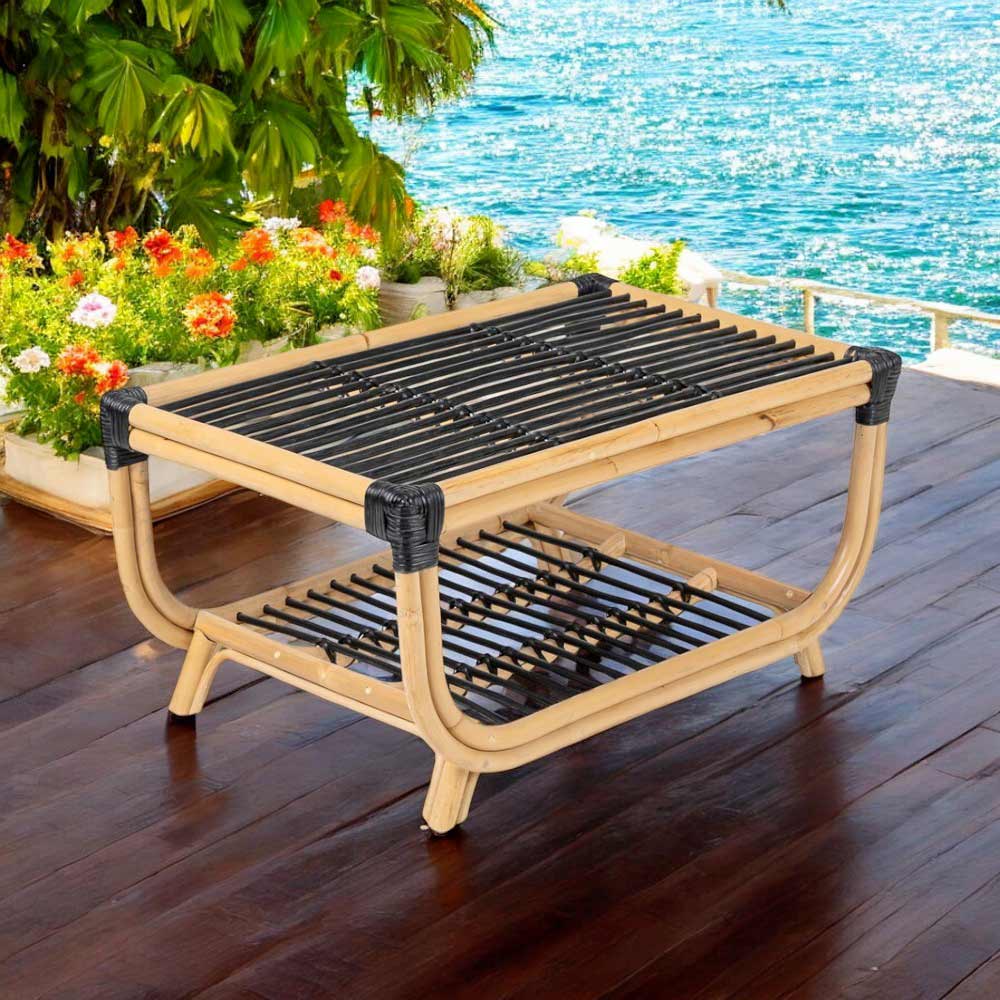 Mesa de exterior fabricada en ratán natural tejido .