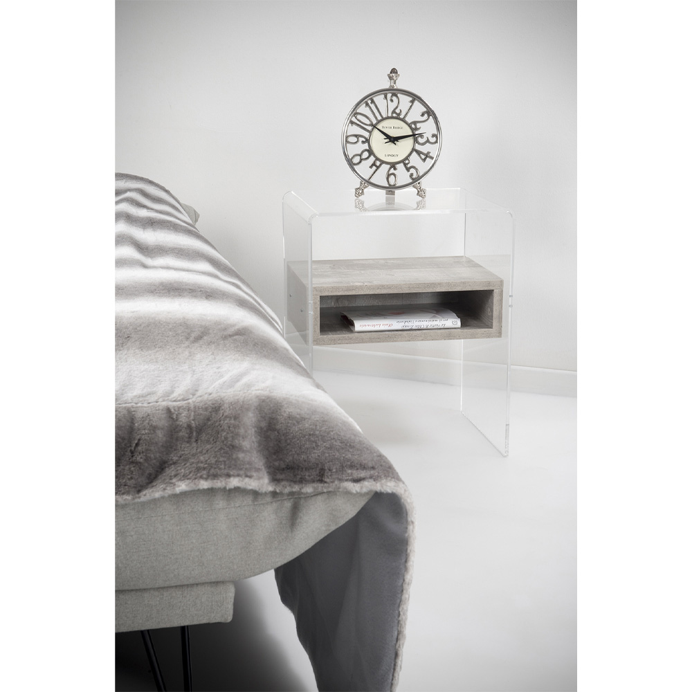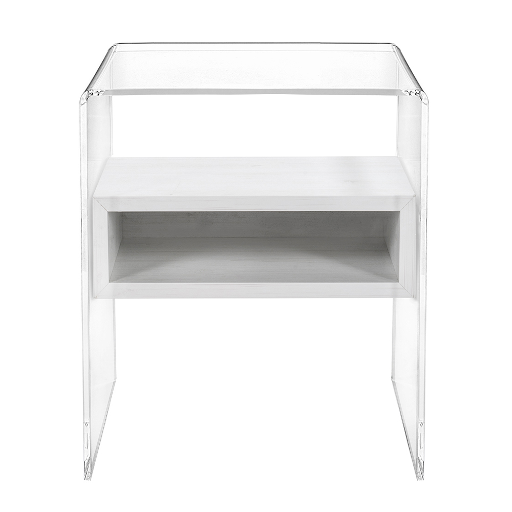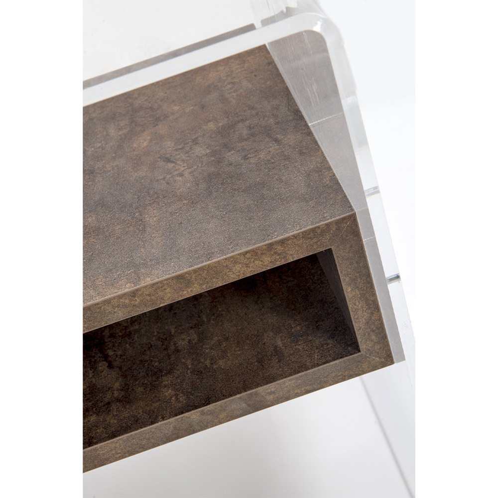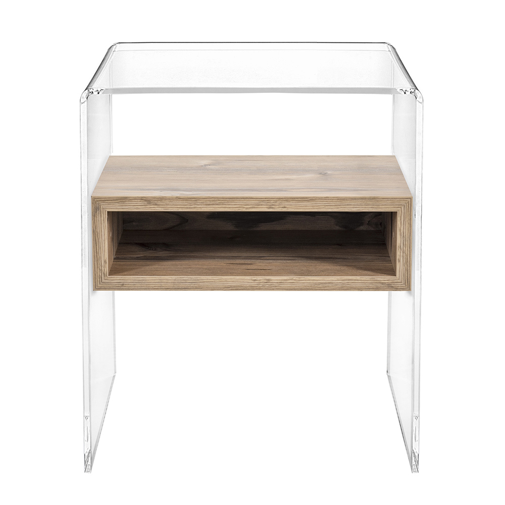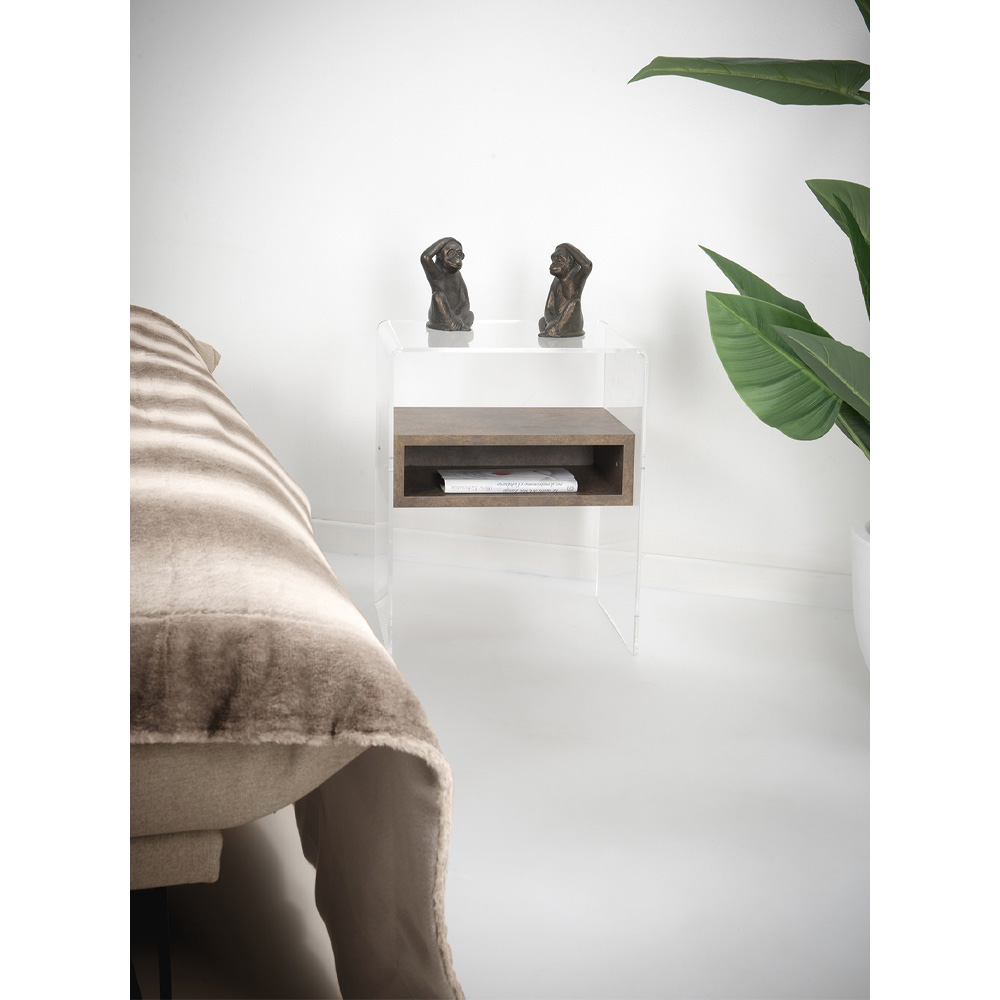 Mesita de noche o mesita en plexiglás transparente y esencias de madera made in Italy.