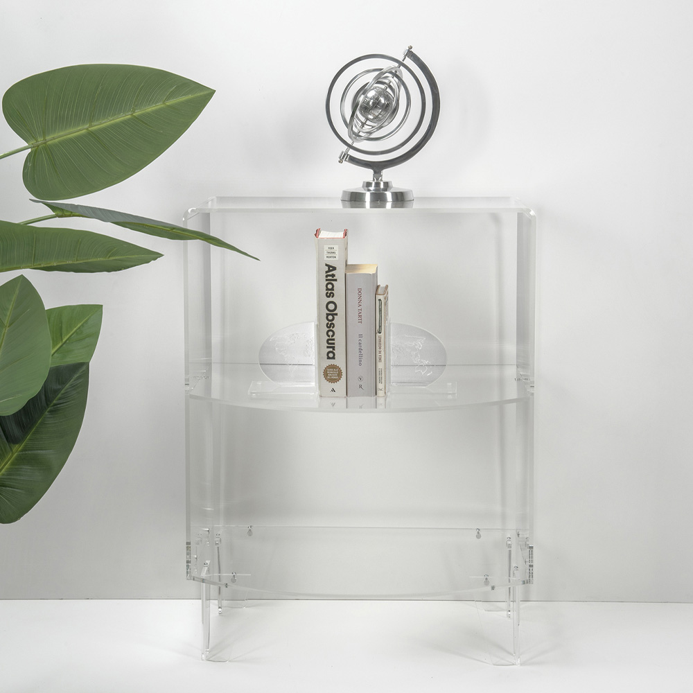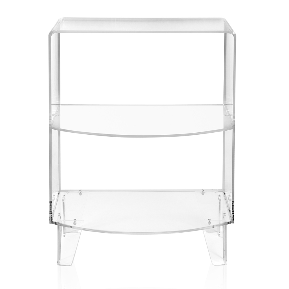 Mesita de noche o mesita de diseño moderno en plexiglás transparente fabricado en Italia.