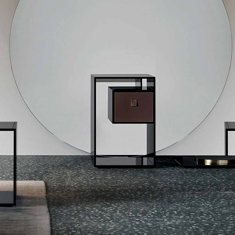 NB: Los cajones en varios acabados y el estante superior para el cajón en vidrio al ácido, espejo o lacado están disponibles bajo pedido. Para una cotización gratuita, no dude en contactarnos llenando el formulario "Solicitar información".