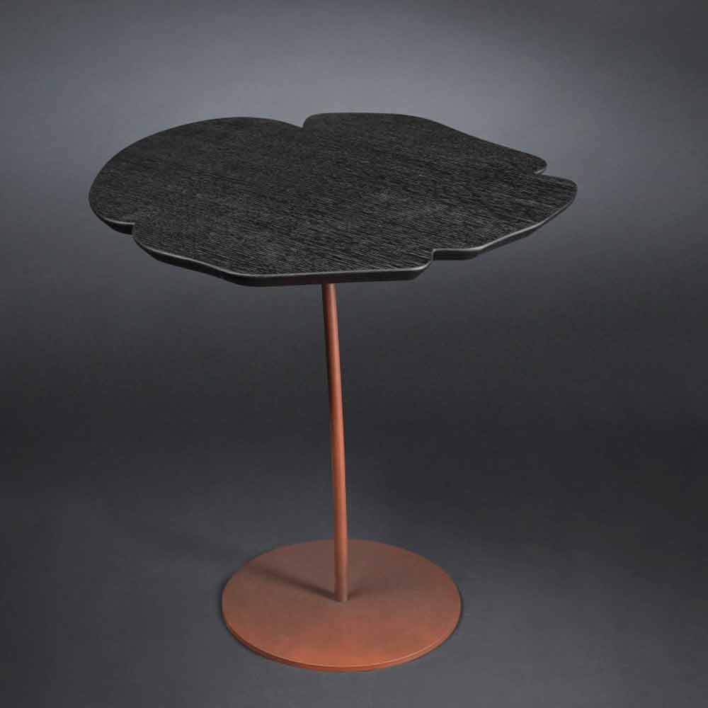 Andy es una mesita robusta, sencilla y elegante, de diseño original y moderno, adaptable a todo tipo de mobiliario. Su forma original de flor otorga un toque de creatividad a todos los espacios en los que se introduce. Enteramente realizada en Italia, su design es único e inimitable. Su peculiaridad esencial consiste en el tablero de roble cepillado a poro abierto color moka, y en la base de metal pintado efecto corten. Andy lleva consigo la unicidad de su design.