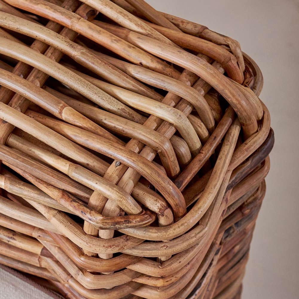 Para una correcta limpieza del Rattan natural recomendamos utilizar paños de microfibra, detergentes neutros y agua tibia.