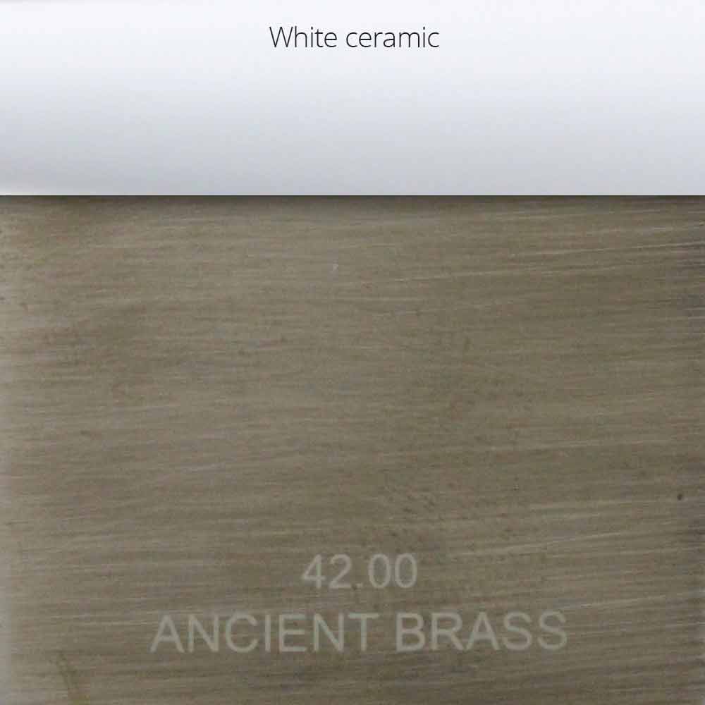 • Latón antiguo brillante: acabado de latón antiguo cepillado pulido con inserciones de cerámica blanca en los mangos;