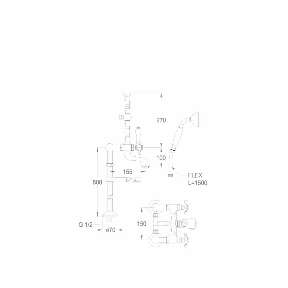 Mezclador de bañera clásico de latón Made in Italy - Eripio