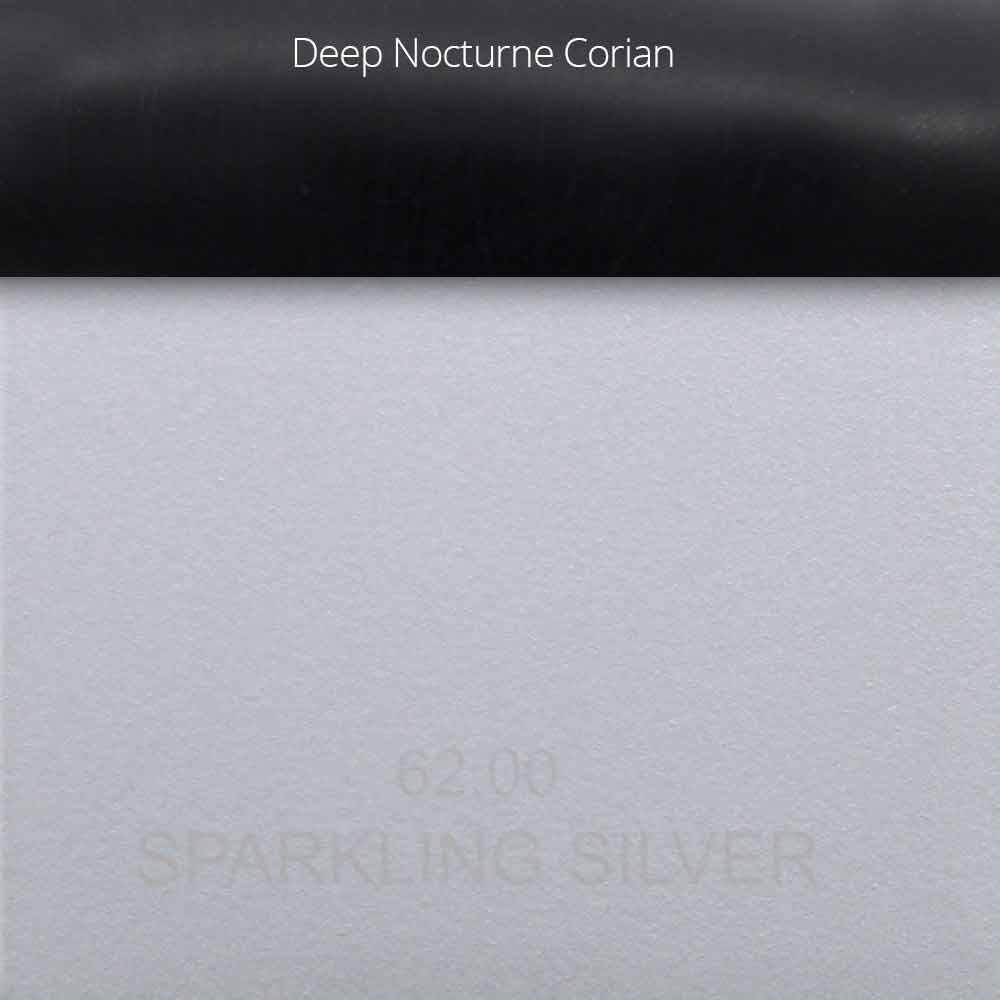 - Sparkling Silver + Deep Nocturne Corian®: acabado metálico plateado mate con elementos en DuPont ™ Corian® negro;