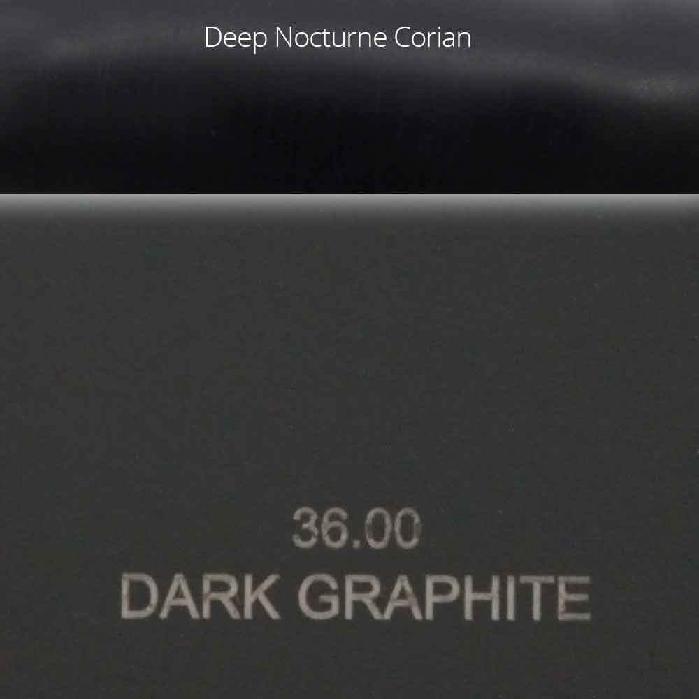 - Dark Graphite + Deep Nocturne Corian®: acabado gris oscuro frío mate con elementos en DuPont ™ Corian® negro;