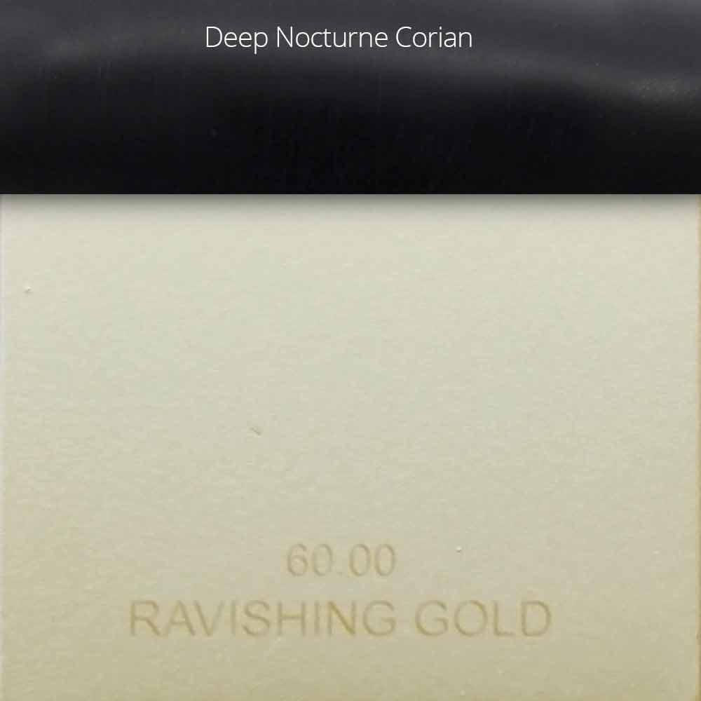 - Ravishing Gold + Deep Nocturne Corian®: acabado metálico dorado mate con elementos en DuPont ™ Corian® negro;