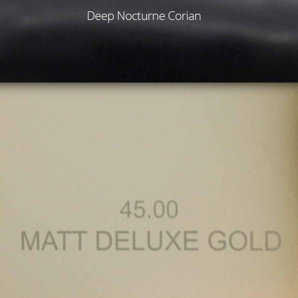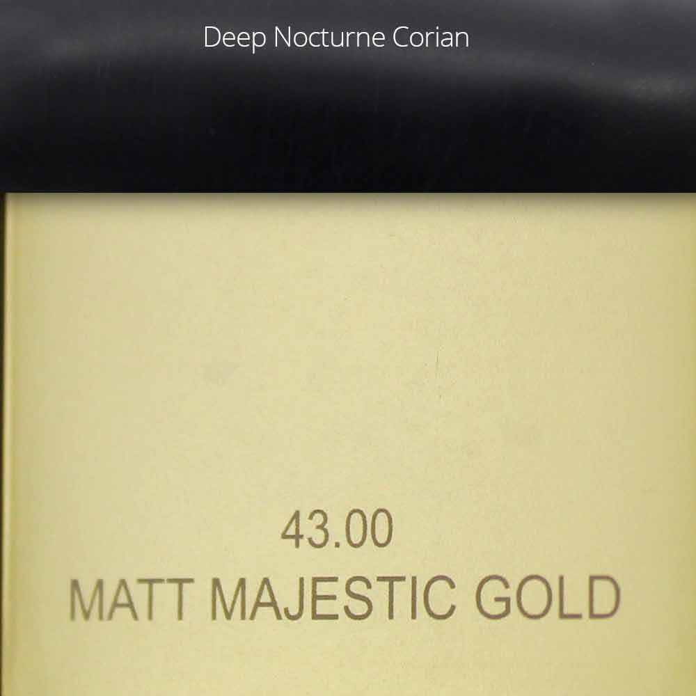 - Matt Majestic Gold + Deep Nocturne Corian®: acabado en oro mate 13 con elementos en DuPont ™ Corian® negro;